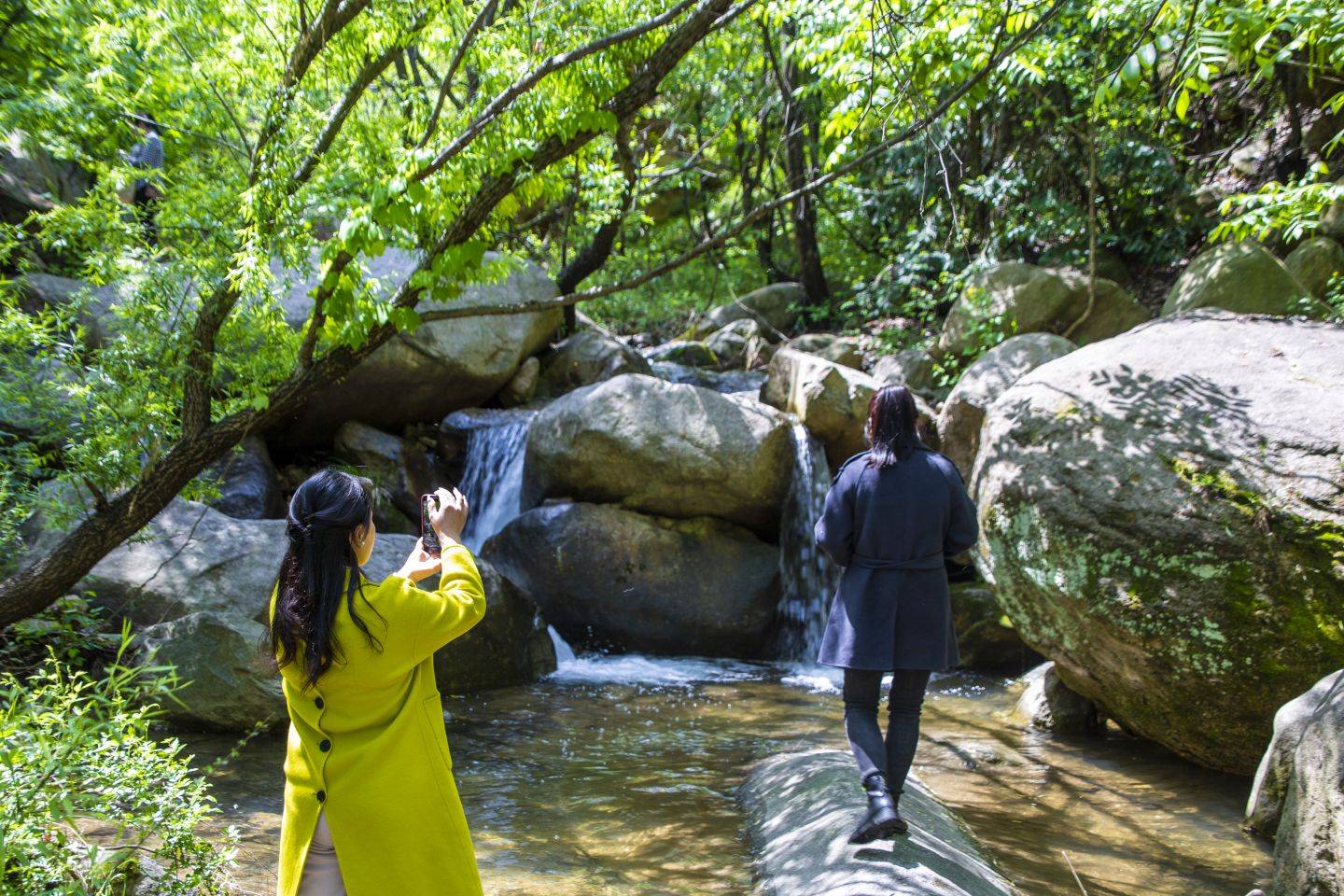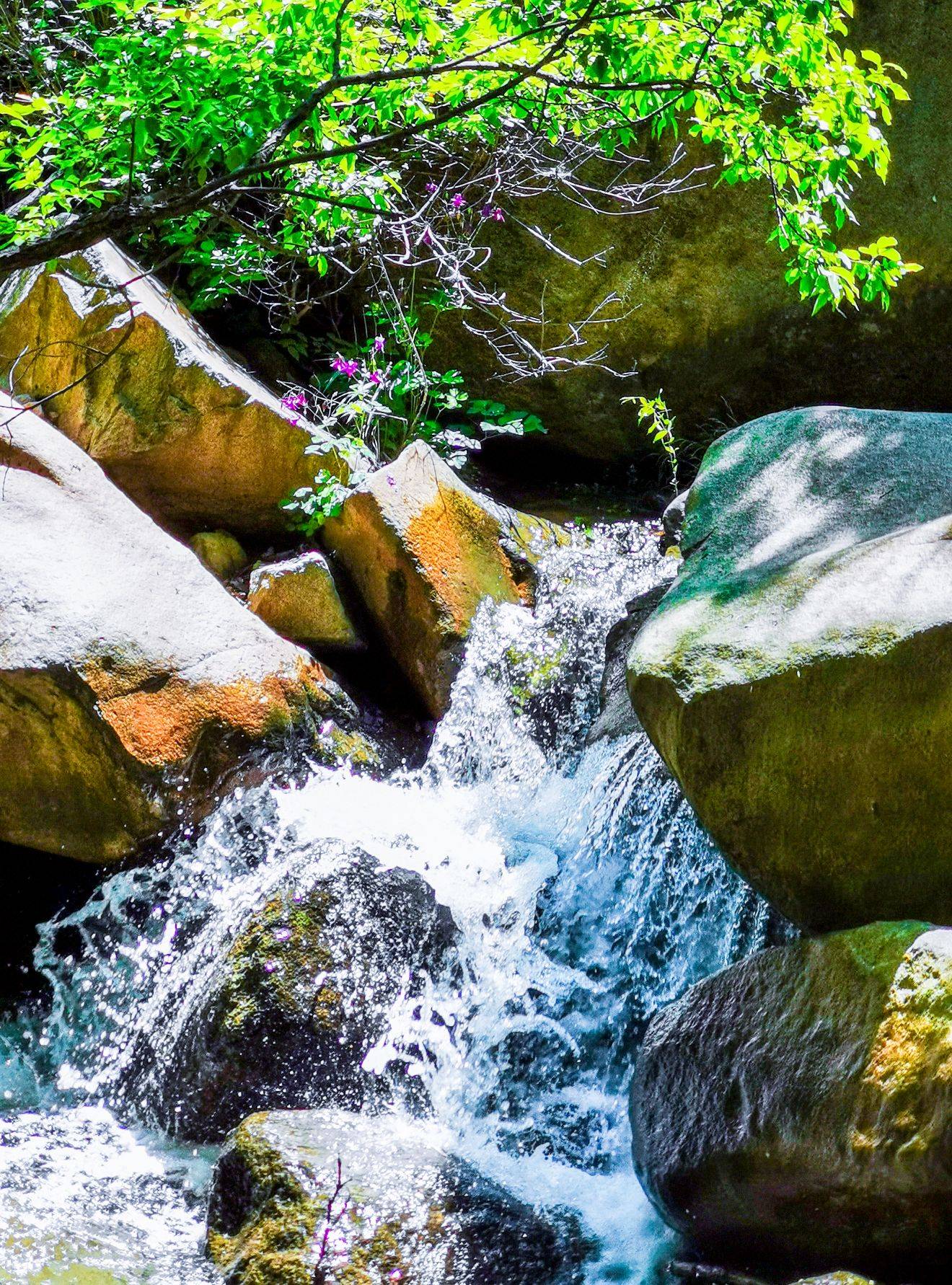 除了美丽的花朵,在这里还有清澈见底、叮咚作响的龙池山泉和奔跑的溪流。雨后来到这里真的是令人心旷神怡,空气中弥漫着湿润清新的气息,绿水青山更是显得格外清新,穿行漫步观景步道,仿佛置身于童话世界中。
