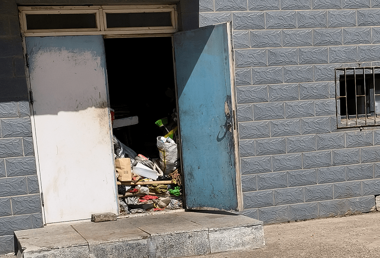 江南明珠小区,高层16号楼1单元-2单元中间的门,里面全是垃圾,存在安全隐患!