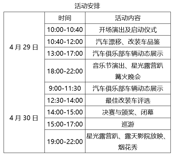 *4月29日-30日全天进行漂移表演及改装车静态展示
