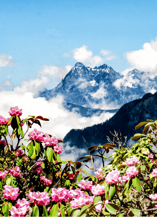 在悠悠深谷处、悬崖峭壁上、穿越丛林直至深处,皆可看见争相绽放的羊角花,令人惊喜。