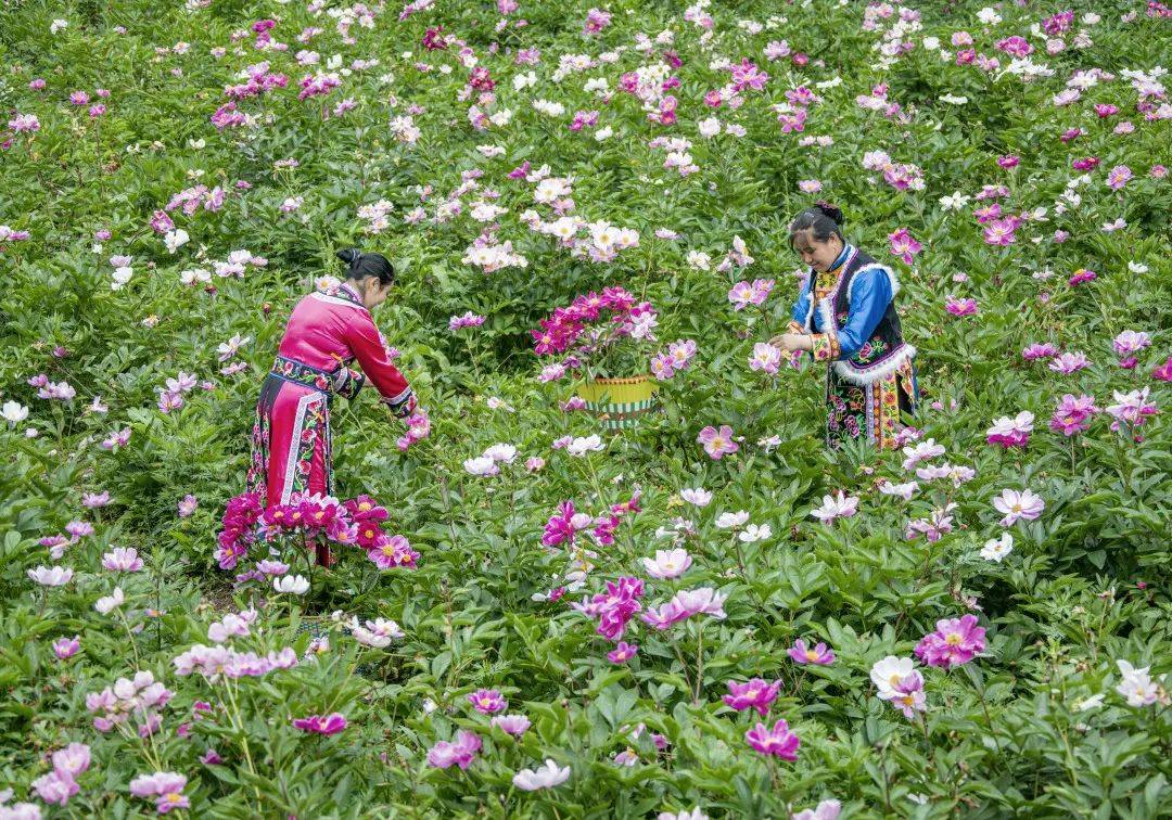 在汶川映秀镇的渔子溪村内,百亩芍药花已逐渐盛放,五一小长假,这里将迎来最佳观赏期。