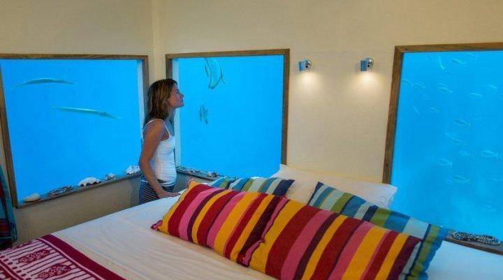 如果你害怕寒冷,不用担心:位于拉普兰 基律纳 附近的朱卡斯耶尔维(Jukkasjärvi)的冰酒店,每年都会从欧洲最纯净的托尔内河的冰层中凿出。这一令人印象深刻的工作让位于一个短暂的建筑,一个安装在冰冻环境中的舒适的巢穴。虽然温度是零下5度,但所提供的睡袋有足够的绝缘性,可以让你睡得很舒服。你只能在12月至4月期间,在冰雪融化之前享受这种不寻常的住宿。你对这种不寻常的体验感兴趣吗?请 在这里了解更多关于酒店的价格和供应情况!曼塔度假村的水下房间,一个水下的天堂