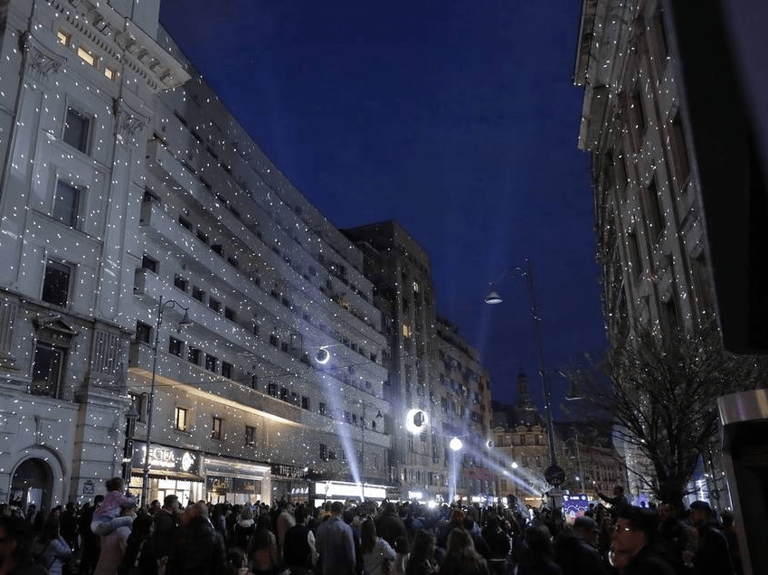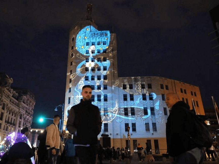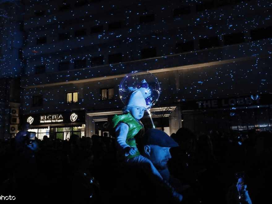 在罗马尼亚首都市中心的23座著名建筑绘制了创意激光图,并为大约10万名公众提供灯光互动装置。