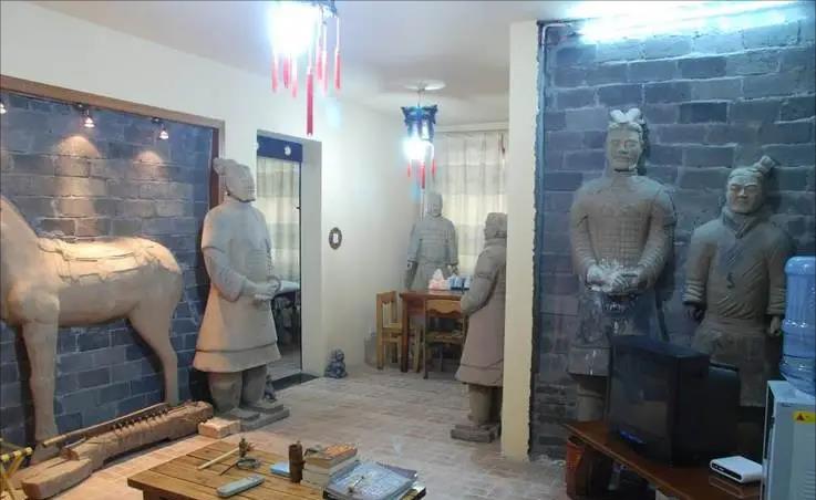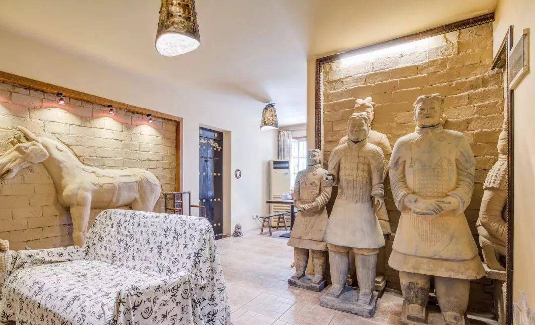 除了在墙上有镶嵌的兵马俑之外,据说在这间房间的床底下,也是有一些兵马俑存在的。不过对于一些历史文物比较感兴趣的人,他们住在这里,也会让自己的心情变得非常的有趣。