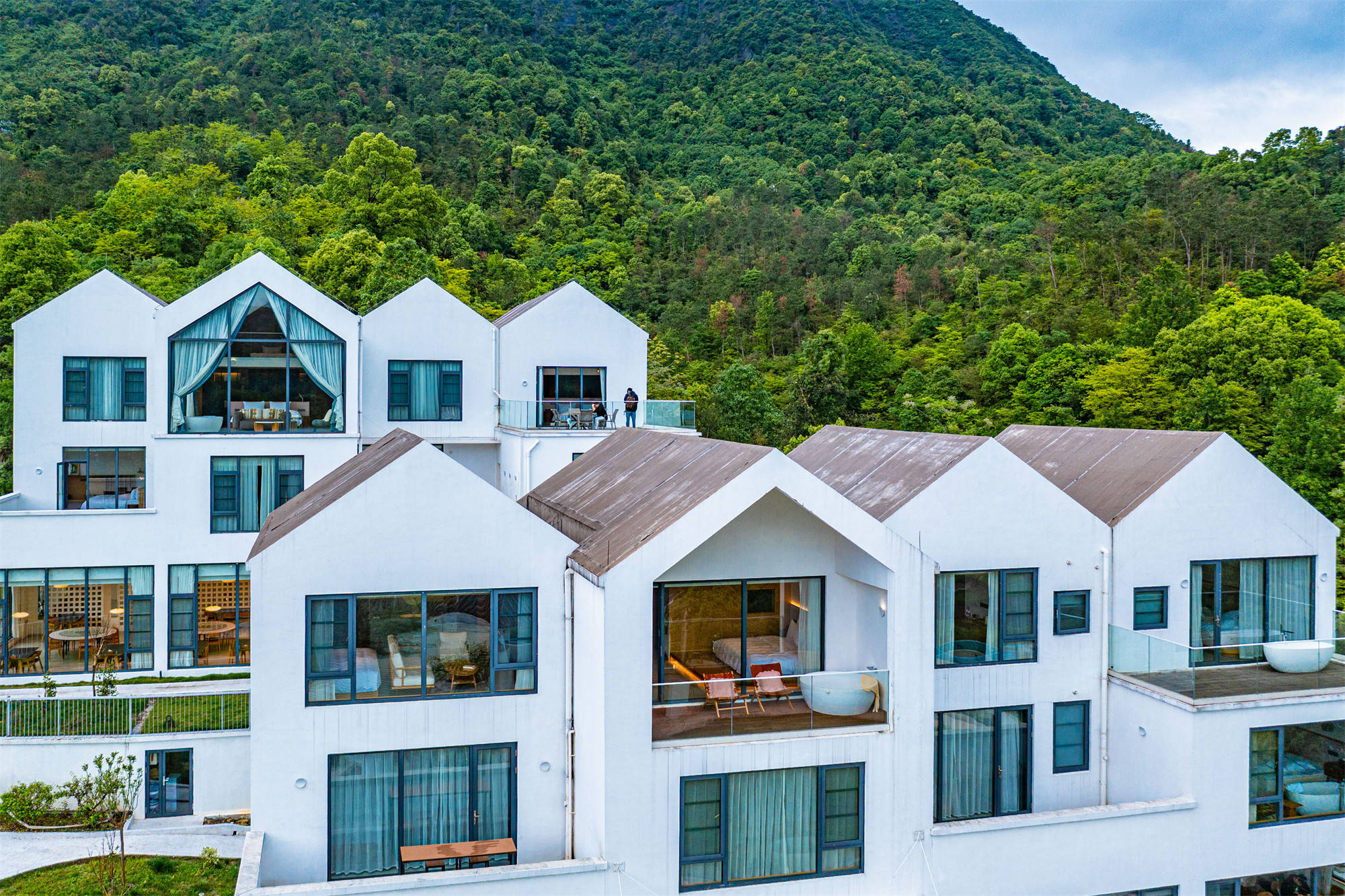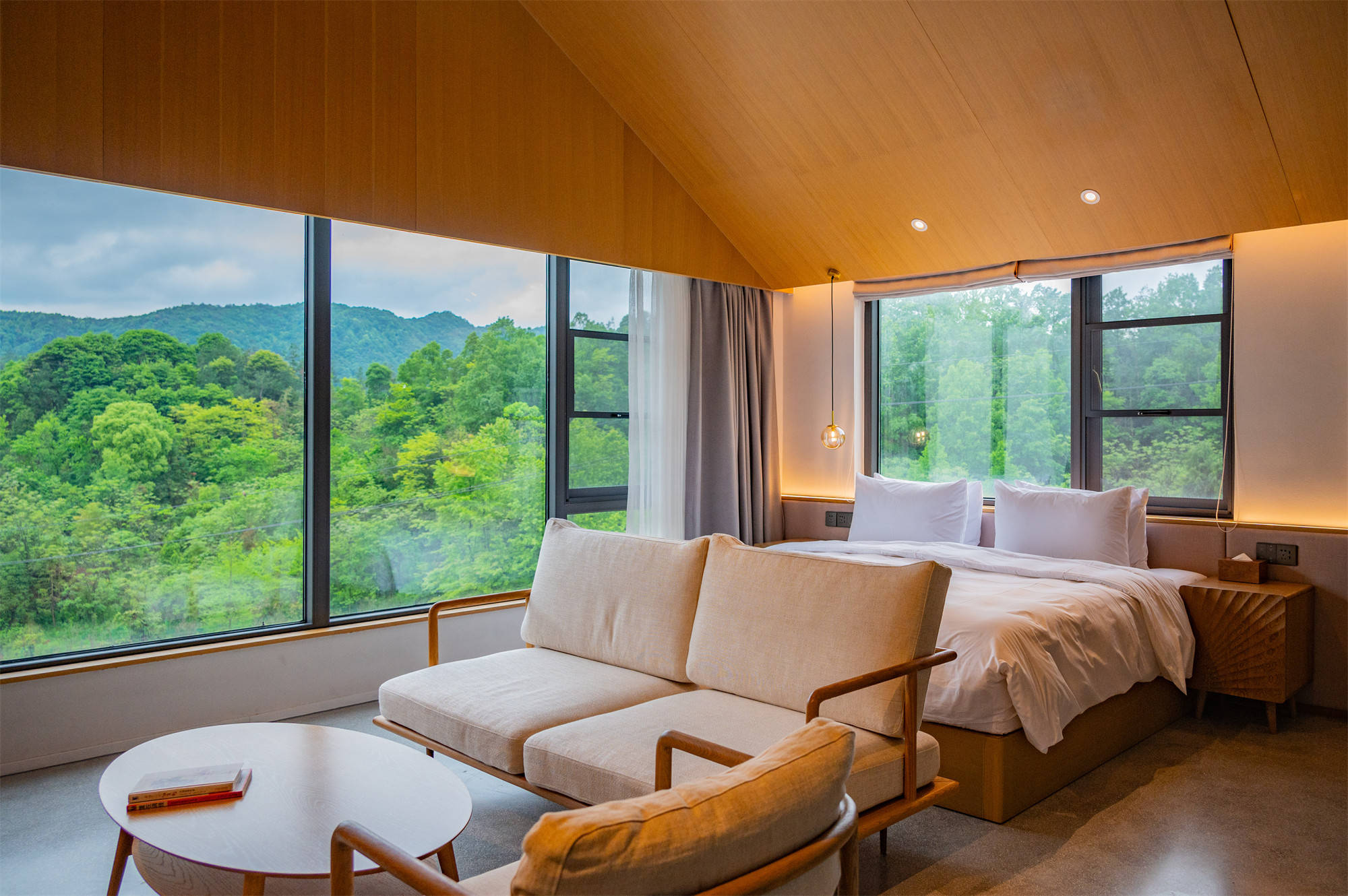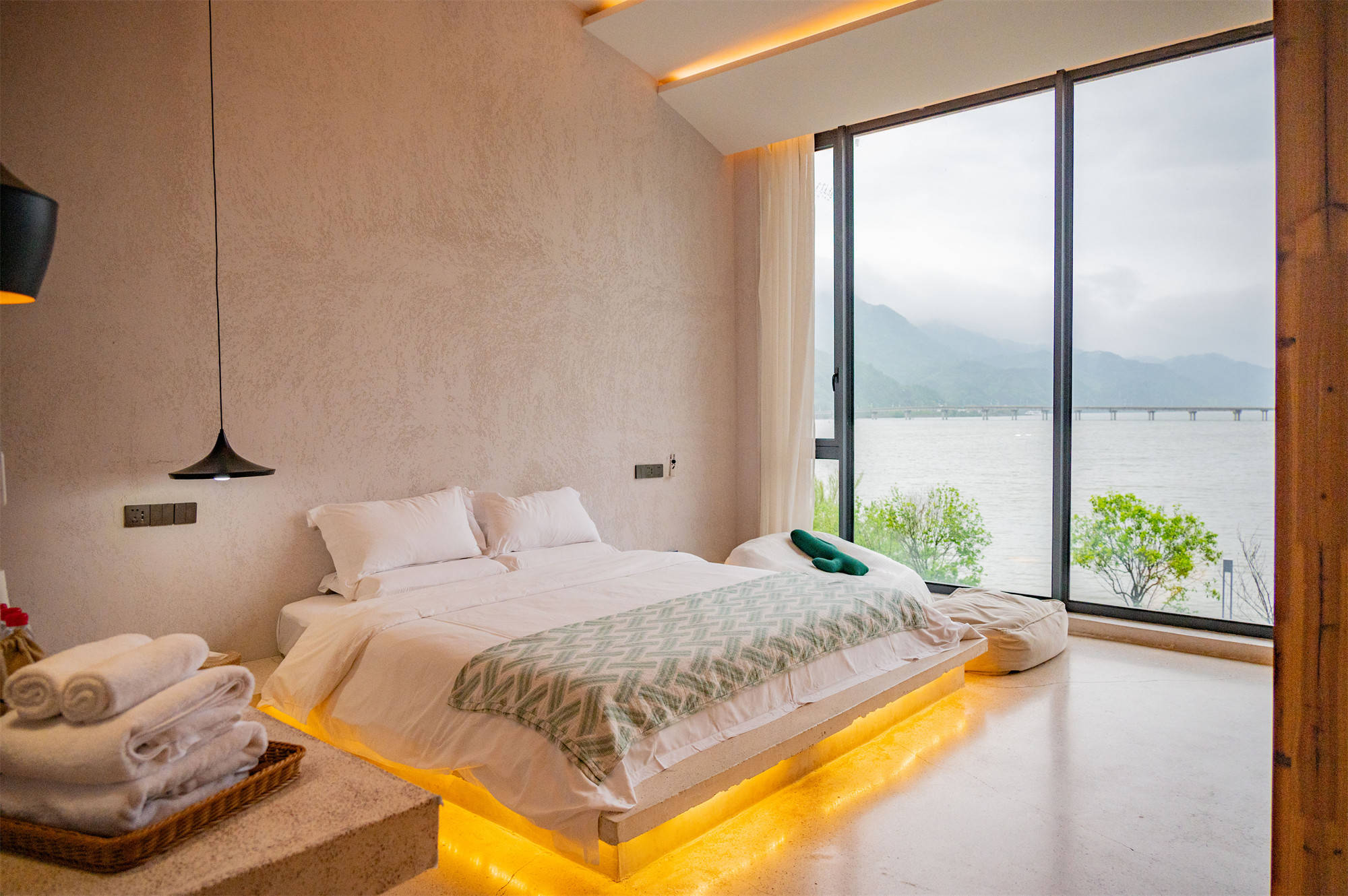 有酒有故事,来九姓渔村一定要住一晚民宿。村里的农家客栈居多,追求品质的游客可以选择夕下·青野。据说它是富春江源头的首家全江景民宿,一共19间客房,观景极佳。我们也在这里做了停留,当天时不时的还下着小雨,格外的有诗意。