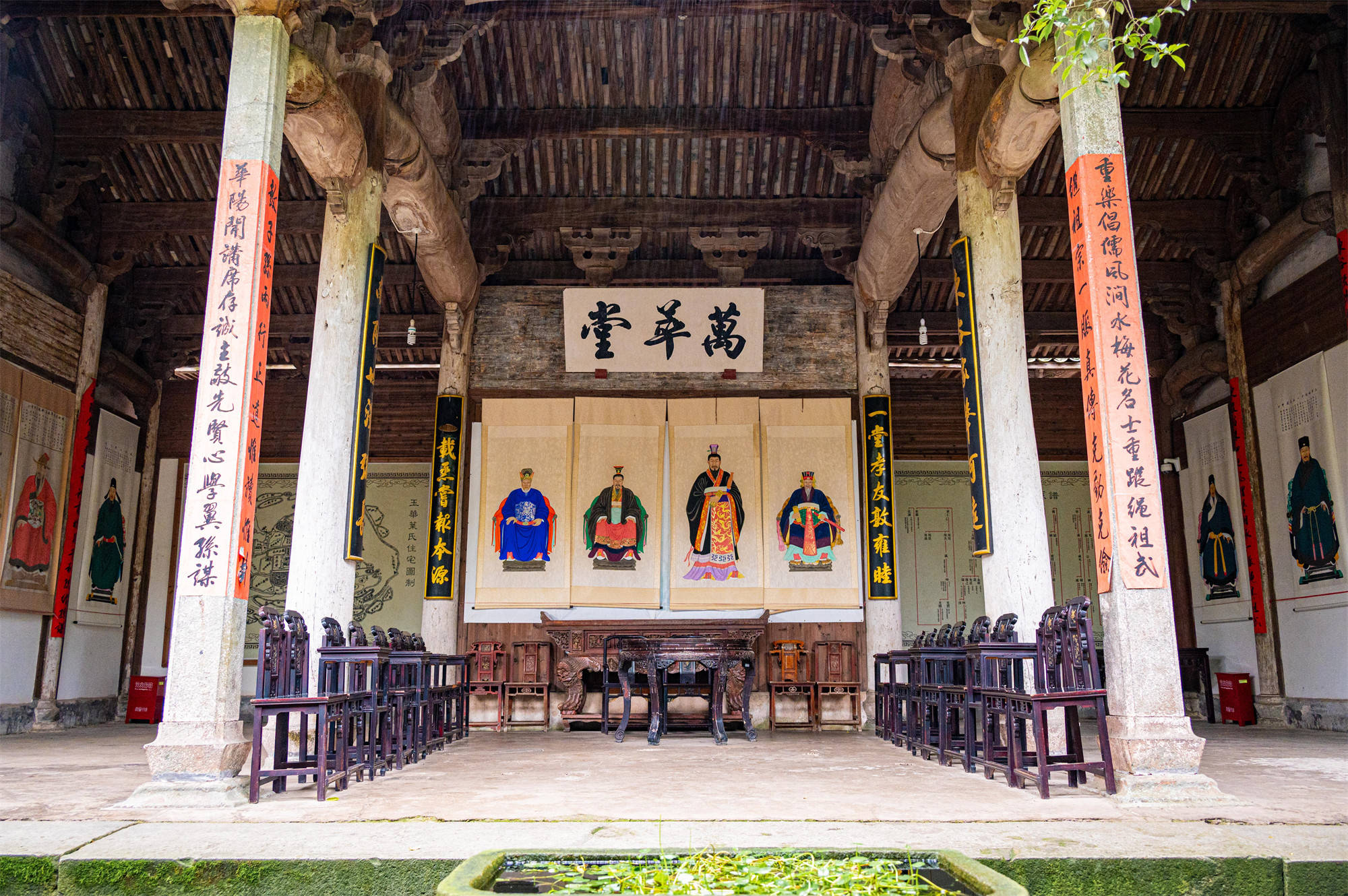 西山祠堂,又名万萃堂。建于元代,是新叶村玉华叶氏祖庙。祠堂最后一进为七开间的重楼,三进一院。东侧有套院,廊庑环绕,中亭独立,形制奇特。