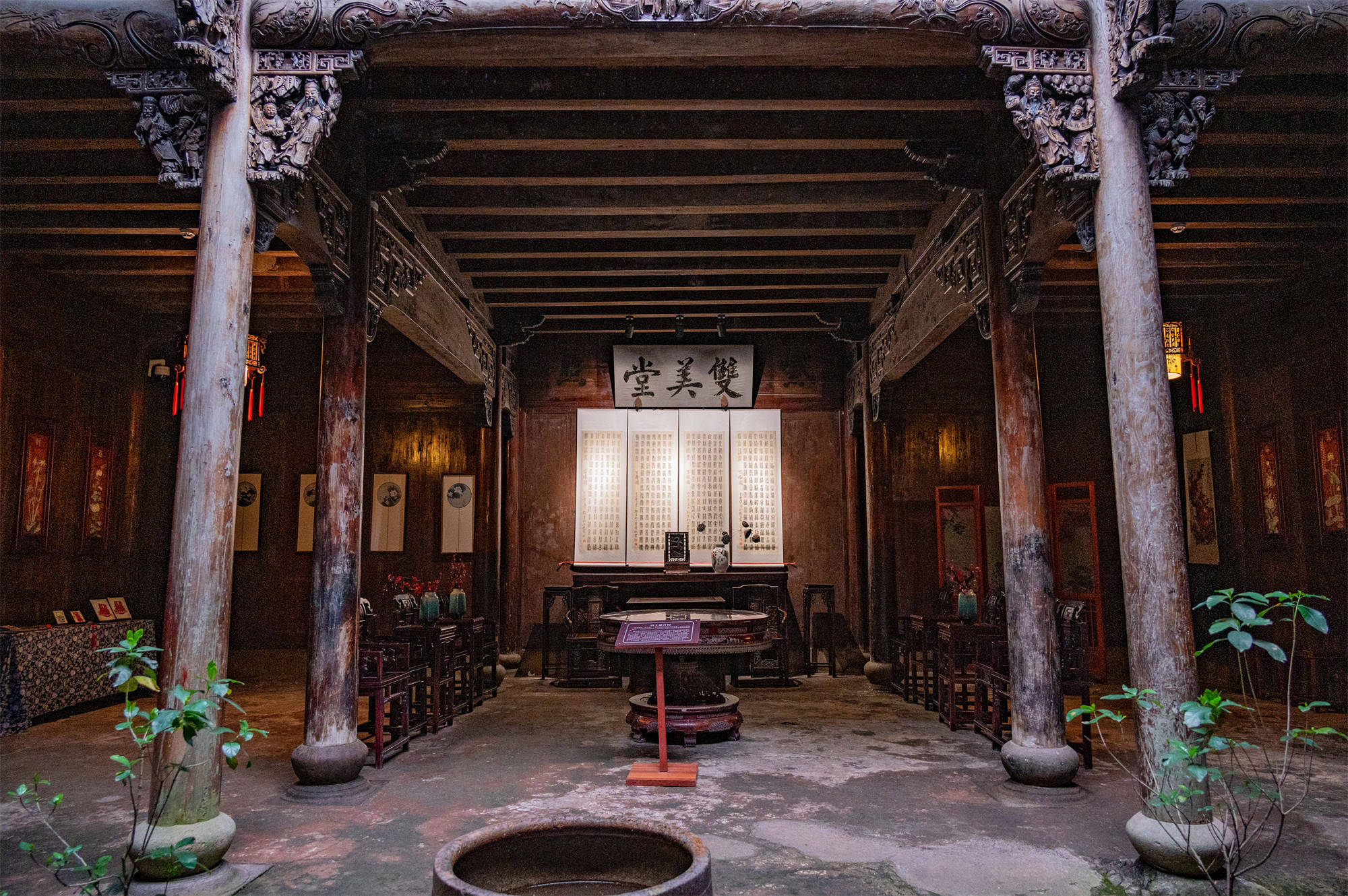 双美堂,建于民国初年,宅主是当时村中七大乡绅之一。整个建筑以前庭(院)后(花)园为格局。是新叶村典型古民居之一。