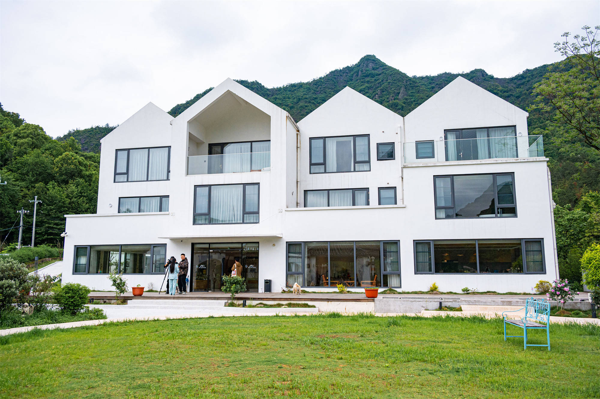 新叶古村在建德的大慈岩镇,在这个镇上我们就去到了一家很不错的民宿叫作雅致•飞凤心灵庄园。具体位置是大慈岩镇吴山村111号。这里两栋白色的大房子在青山之中十分惹眼,周边没有其他钢筋混凝土的大号建筑,在这里住着格外放松。