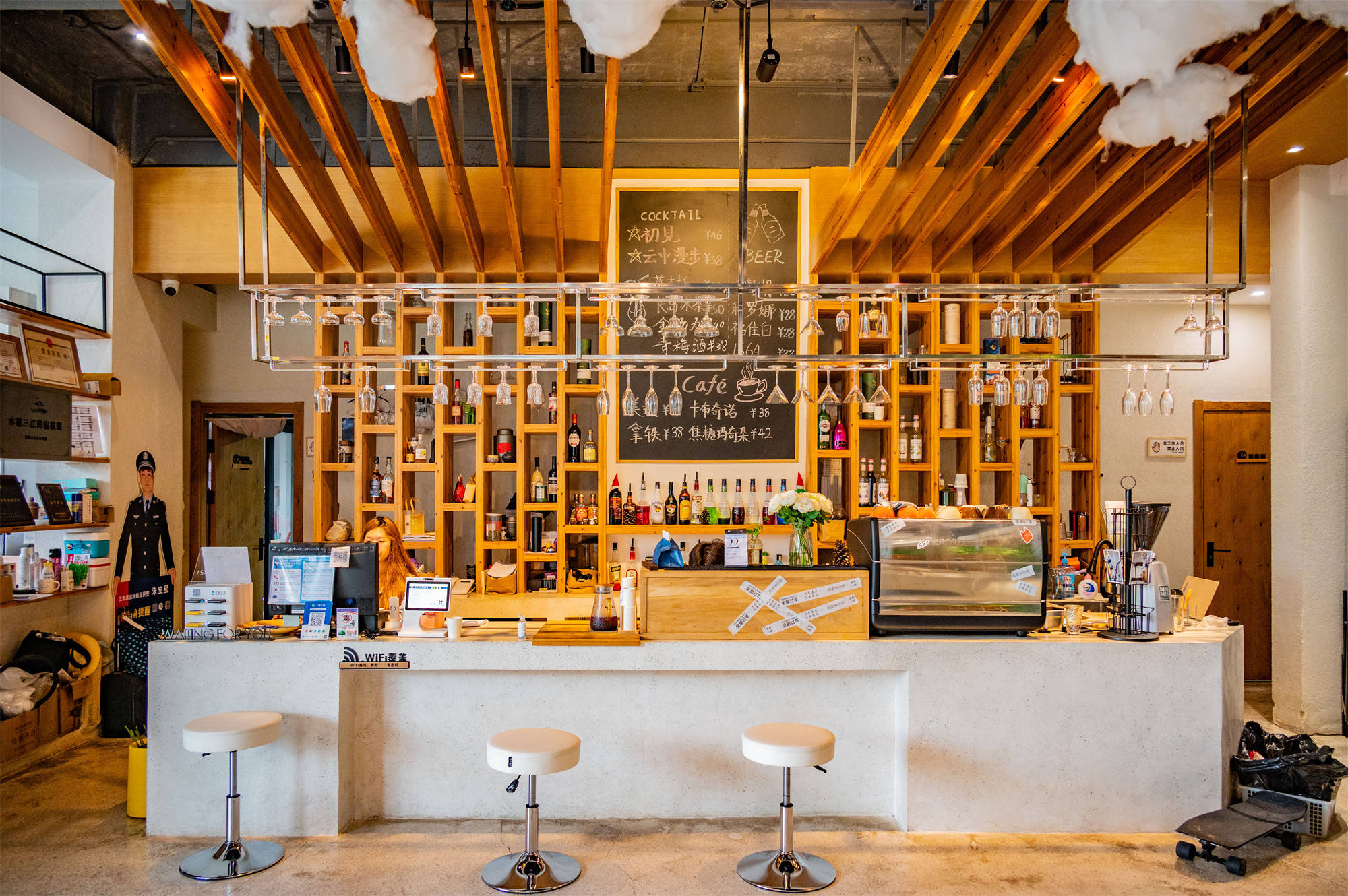 民宿公共区域还可以点到咖啡、啤酒,还能唱歌、看书,甚至还配有1000平方米的高规格无边泳池。总体来说特别适合年轻游客的调性。