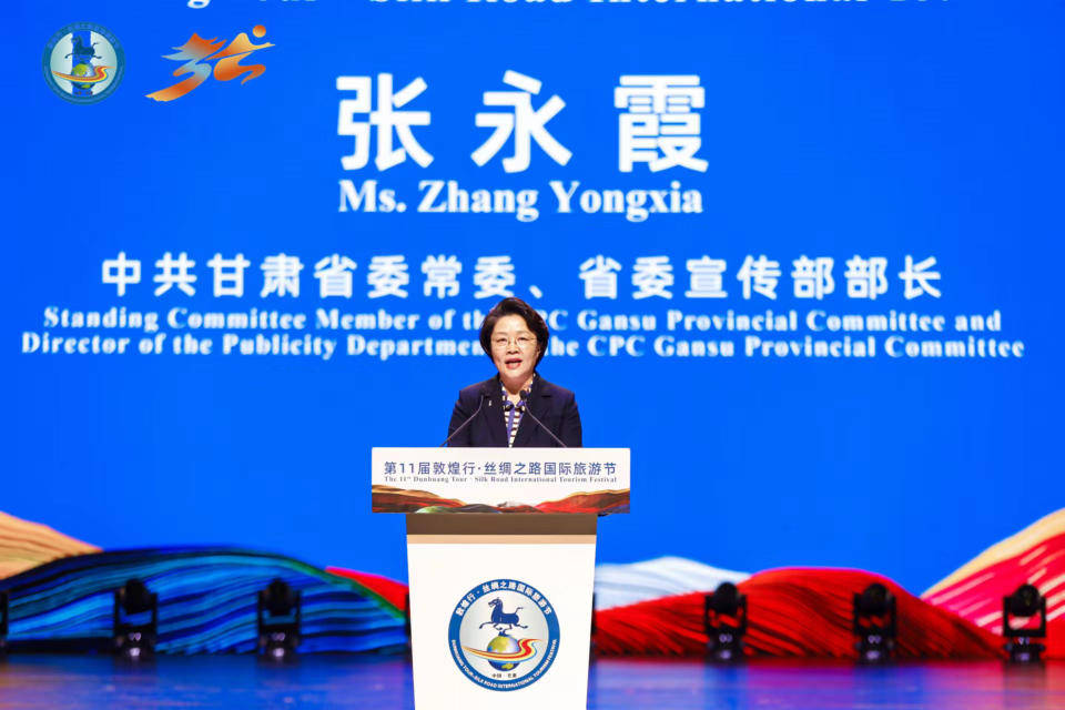 由文化和旅游部、甘肃省人民政府共同主办的第11届敦煌行•丝绸之路国际旅游节于4月26日在张掖市盛大开幕。本届节会以“加强‘一带一路’合作,共促文旅市场复苏”为主题。这是“一带一路”倡议下甘肃以节聚商、以节促游、以节兴业的执行方案,丝路沿线各国人民携手并肩、共同发力,通过节会广交朋友、结缘市场,筑牢拓宽合作互促之桥。