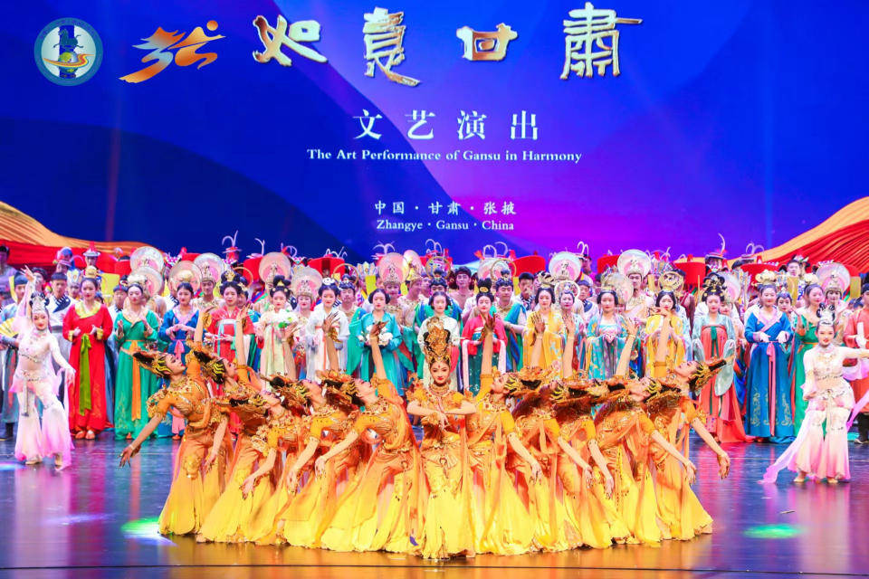 开幕式文艺演出以“如意甘肃”为主题主线,向四海宾朋展示了宏壮瑰丽的敦煌艺术,让大家领略了悠久神秘的历史文化,体验了丰富多彩的民俗风情。文艺演出在古韵恢宏的舞蹈《丝路之光》中拉开序幕。武术表演《问道崆峒》极具阳刚之气,反映了崆峒独具特色的文化元素;民歌联唱《“花儿”声声》展示了多姿多彩的风土人情;情景歌舞《白马山寨》歌声飘荡、舞步欢畅;非遗展演《吉祥高原》蕴含着中国文化基因和审美意境;舞蹈《大河之行》《祁连欢歌》舞出了独特的地域文化;歌曲《梦回雄关》歌声浑厚,震撼人心;写意杂技《生命礼赞》赢得全场观众一次又一次掌声;器乐表演《玄奘西行•极乐》将现场气氛推向高潮;敦煌复原服饰秀《绝色敦煌》绝妙地传播出了敦煌的风韵,活化出了千年敦煌的时尚风采;甘肃民谣歌手张尕怂演唱歌曲《我画个甘肃给你看》把现场气氛再次点燃。整台演出诠释了陇原大地深厚的文化底蕴和无穷魅力,分地域板块展示了甘肃各地多元文化、自然风光以及民族风情。一曲曲动人心弦的歌谣、一支支柔美抒情的舞蹈,让现场嘉宾享受了一场轻松愉悦的精神大餐。