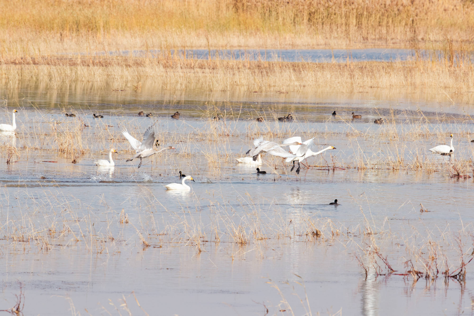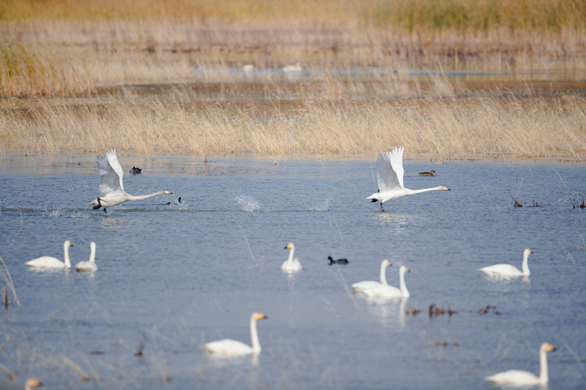 四月,春光明媚灿烂,草木初萌,花开烂漫。在内蒙古巴彦淖尔市临河区黄河岸边的湿地水泊上,姿态优雅的白天鹅结伴而行,或在水中追逐游弋或跃然而起盘旋飞翔,舒展着身姿享受着暖阳,陶醉在春的怀抱里,增添了春的灵气。