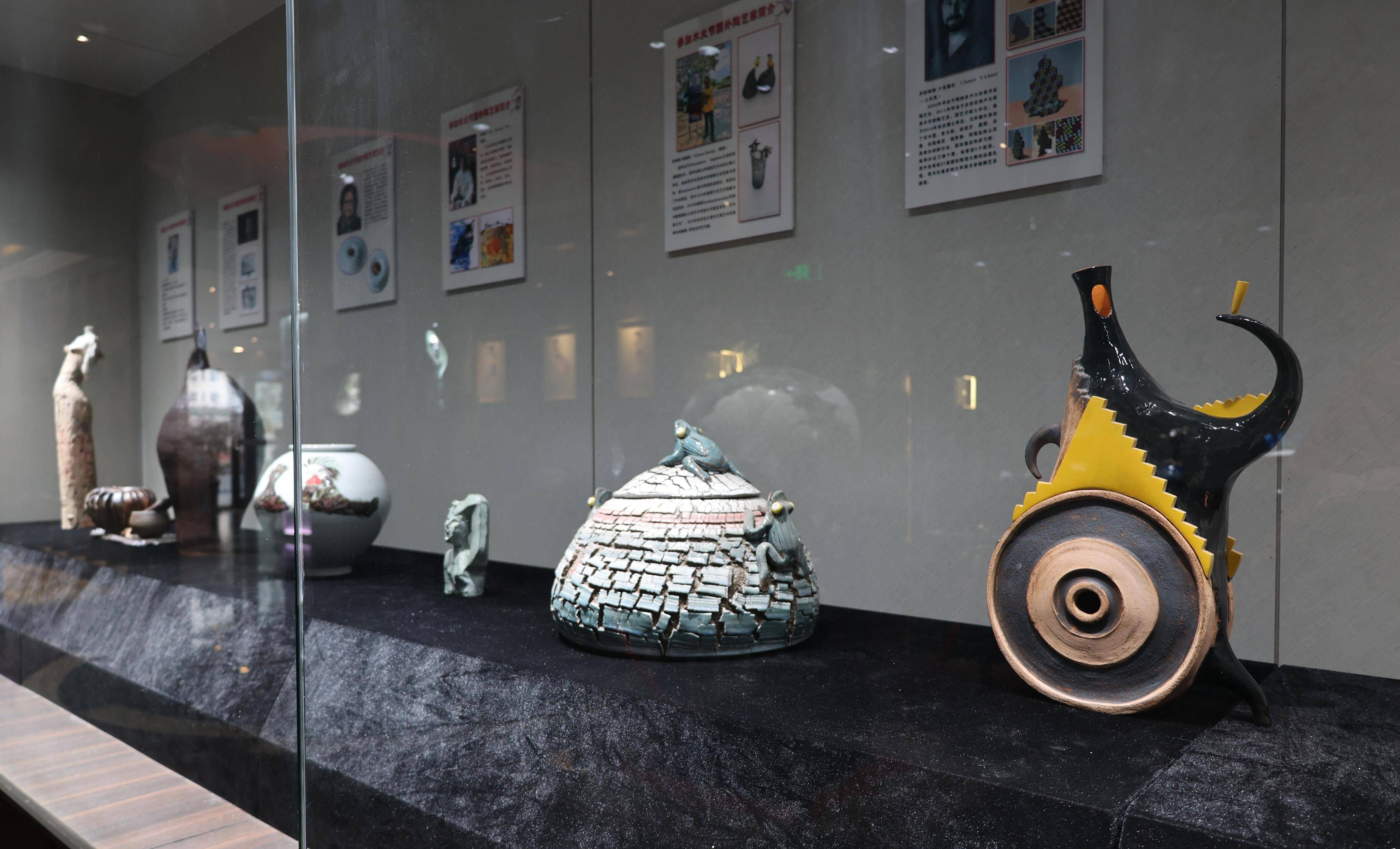 谈起陶艺作品的创作,两位老艺人兴奋地告诉记者:“我们这里设有国家级非遗体验区,除了展演陶瓷传统技艺以外,宾客还可以现场体验古老手工拉坯、捏塑、雕刻等陶瓷传统技艺,现场制作陶艺品,现场烧成,制作属于自己的独一无二的产品。”记者看到展台上摆放的形态各异陶艺品,全部为陶艺家手工制作、柴窑烧制。