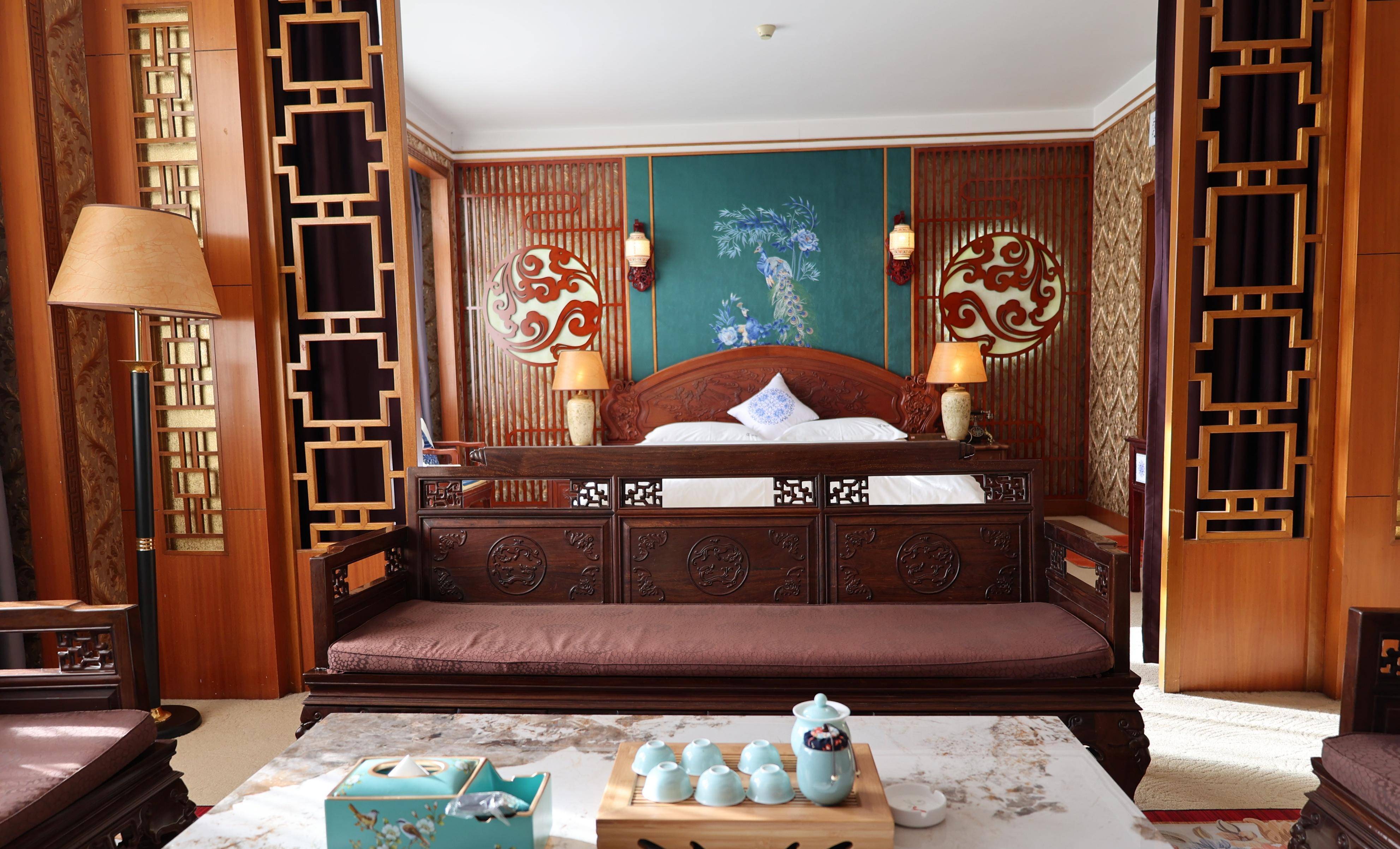 驻足酒店大门,门厅顶棚镶嵌着30个由中国工艺美术大师、中国陶瓷艺术大师王一君先生设计创作的鱼文化陶瓷盘,映射出人民生活喜庆有余,幸福美满。