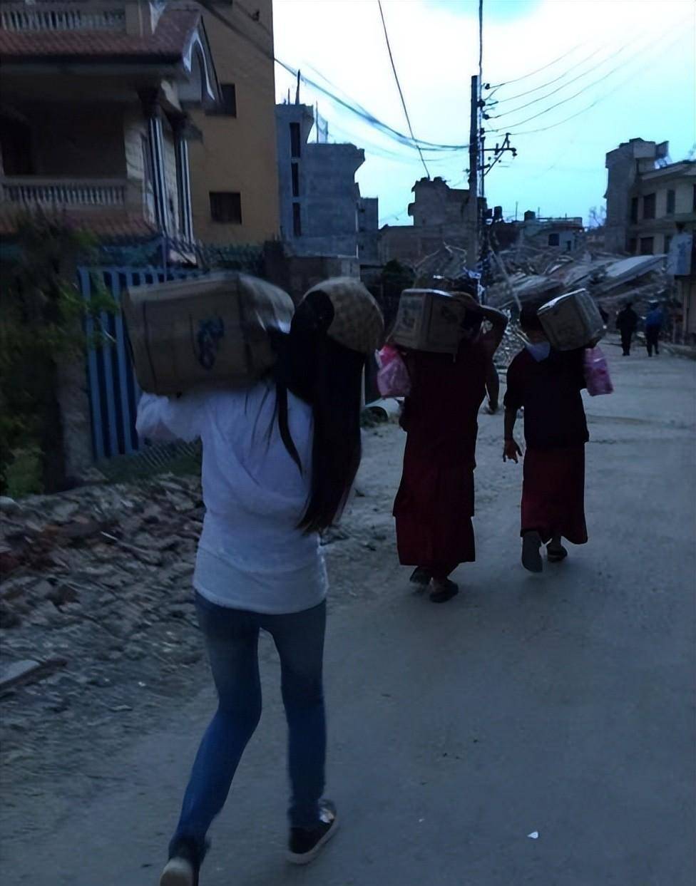 记得有一次和当地寺庙合作,一起去给山里村子送物资,半路发生了7.6级的余震。当时我们还在村子里,余震过后,一个小孩家的屋子就倒了,他的妈妈被埋在了里面。小孩自己跑了出来,满头都是血,一直哭一直哭,我看到之后非常难过。