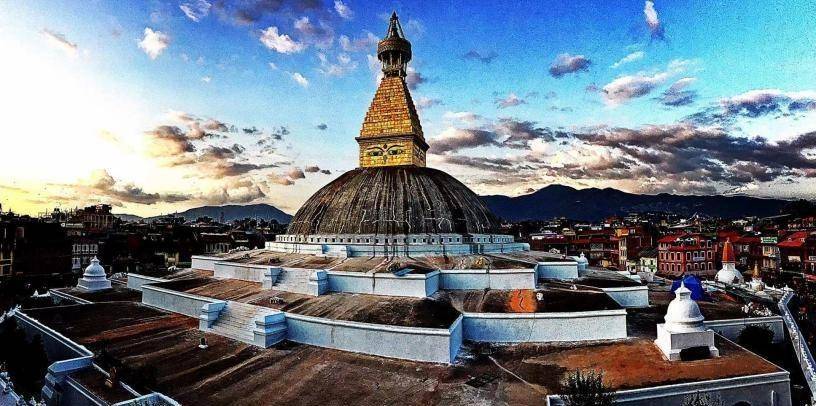 (尼泊尔的地标建筑—世界最大拱形佛塔大宝塔)