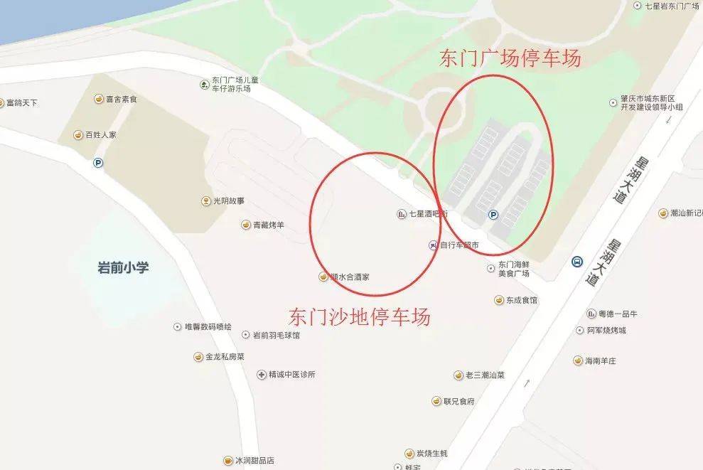东门广场停车场、沙地停车场停车位约 350个,视情况可增加东门广场至七星岩大桥路面临时停车位 100个、星湖大道两侧非机动车道临时停车位 200个,岩前一号、二号、象山临时停车位 470个。