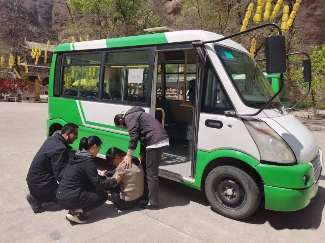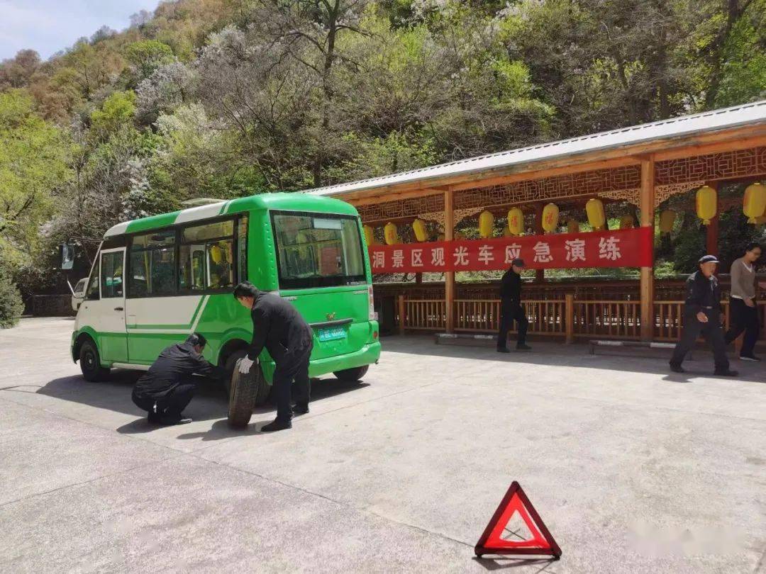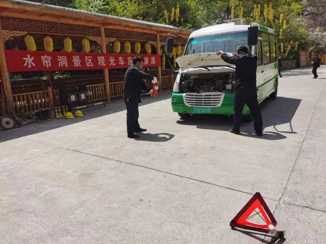 现场模拟了景区观光车搭载游客在行驶过程中遇游客突发疾病、观光车发动机舱着火、观光车爆胎等突发情况,观光车司机在第一时间拨打景区救援电话,同时安抚车上其他游客的情绪,积极开展了应急处置工作。