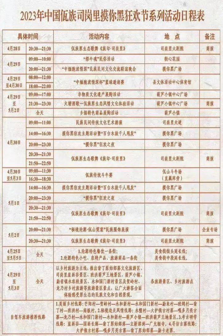 2023年中国佤族司岗里摸你黑狂欢节将于4月28日至5月3日在临沧市沧源佤族自治县举办,为确保节庆期间各项活动顺利进行,有效维护道路交通秩序,最大限度减少交通拥堵,全力预防道路交通安全事故,切实维护广大人民群众的生命财产安全,为广大人民群众、四海宾朋来沧欢度节日营造安全、有序、顺畅的道路交通环境。结合实际,现将涉及到的重点时段、重点路段(区域)临时交通管制通告如下: