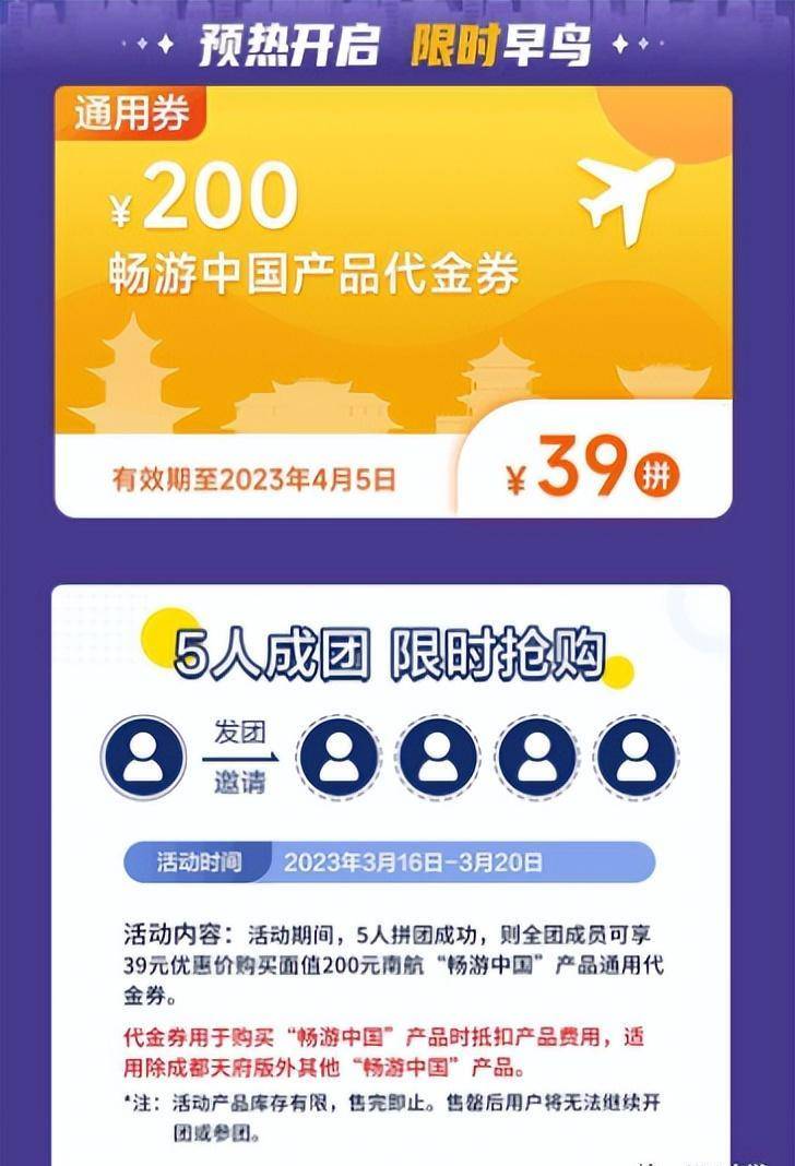 目前有组团5人可用39元买200元的优惠券。有兴趣的可以去组团买券,能省就省。
