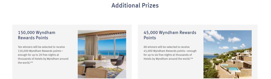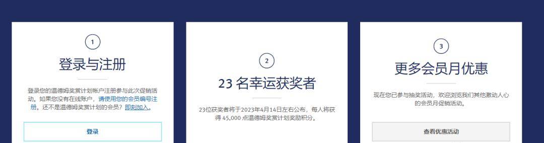 中国内地专属抽奖活动需要在3月31日前进行活动登记,温德姆将会在2023年4月14日公布23名幸运儿。每人将会获得45000温德姆积分。相当于可以获得最多6晚的免房兑换(最低7500分一晚)。