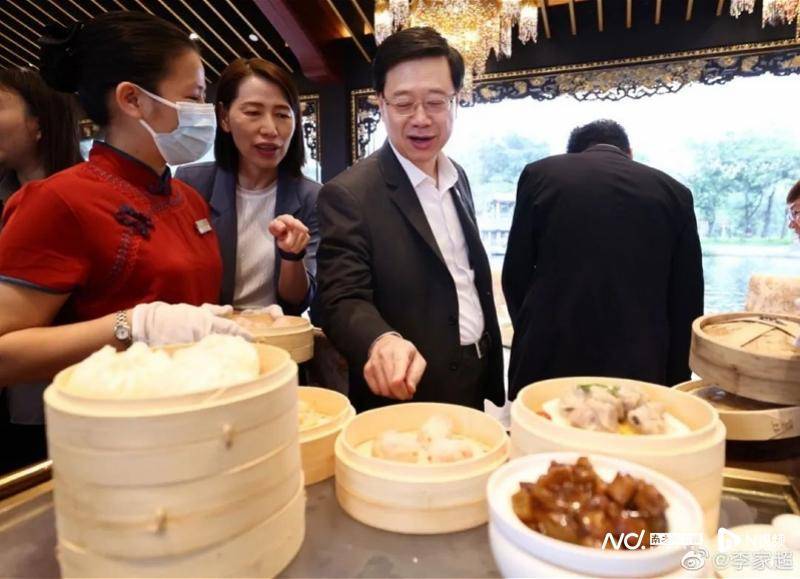 李家超来到泮溪酒家喝早茶,体验“广式早茶”,感受“食在广州”。图片来自李家超官方微博