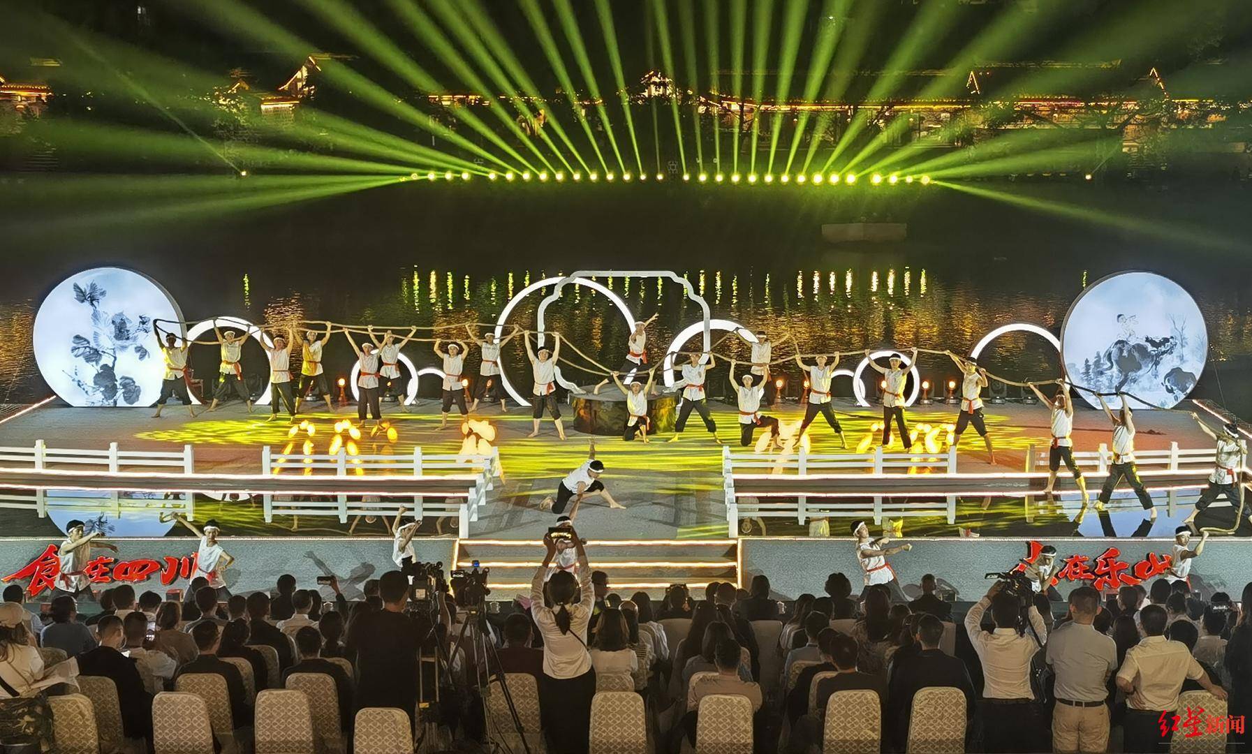 4月27日晚,峨眉河畔的千年苏稽古镇,夜色璀璨,人声鼎沸,乐山市“乐山味道”美食文化节在一场充满诗意的演出中火热开幕,也点燃了即将到来的“五一”出游热情。