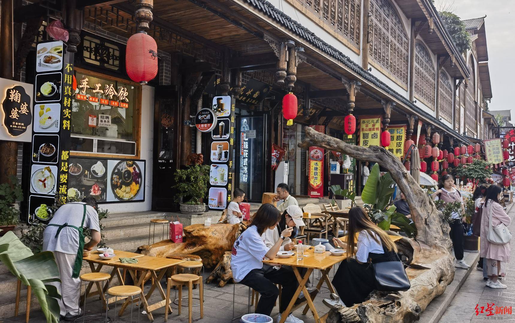 ↑乐山美食吸引游客驻足