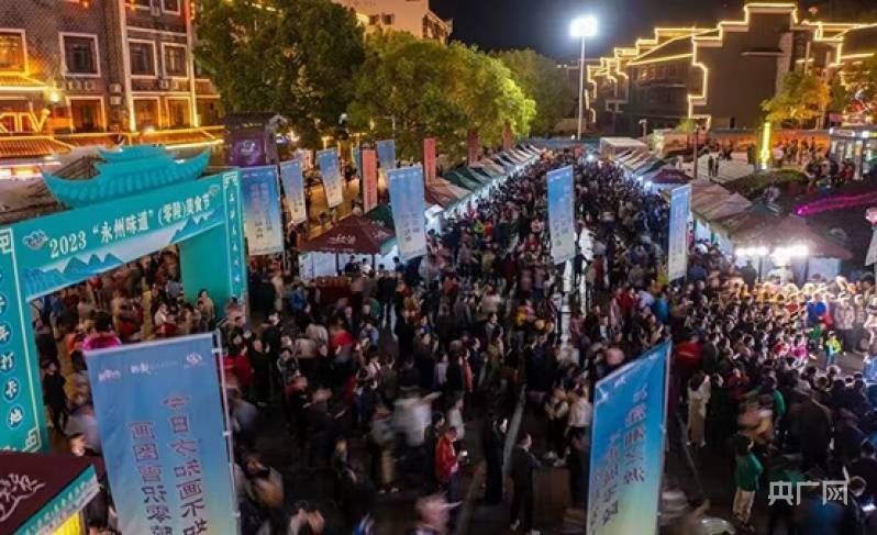 央广网长沙4月27日消息 4月26日晚,2023年“永州味道”(零陵)美食节在湖南省永州市零陵区东山文化广场火爆开幕。