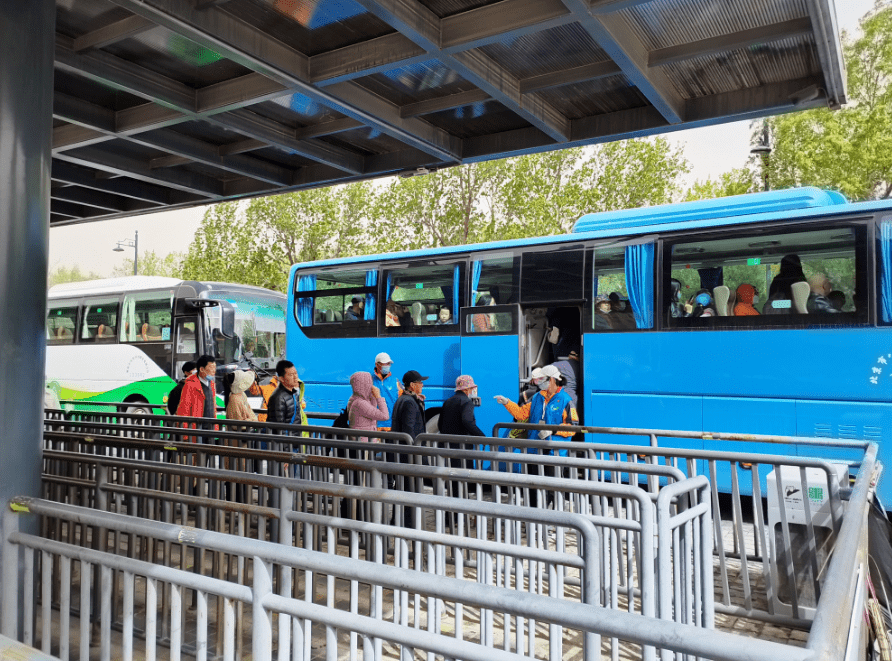 “景区内的接驳车全部免费提供服务,‘五一’期间,我们安排了35辆接驳车、40名司机,全力保障景区内接驳运力。接驳车运营时间为早6点至晚18点,客满即发。”八达岭长城管理处旅游服务管理科科长宋晓波说,“景区内有4个接驳车站,分别为长城天地接驳站、岔西接驳站、步行街街口接驳站、北线索道接驳站,在步行街街口接驳站或北线索道接驳站下车,可到达八达岭长城景区。”