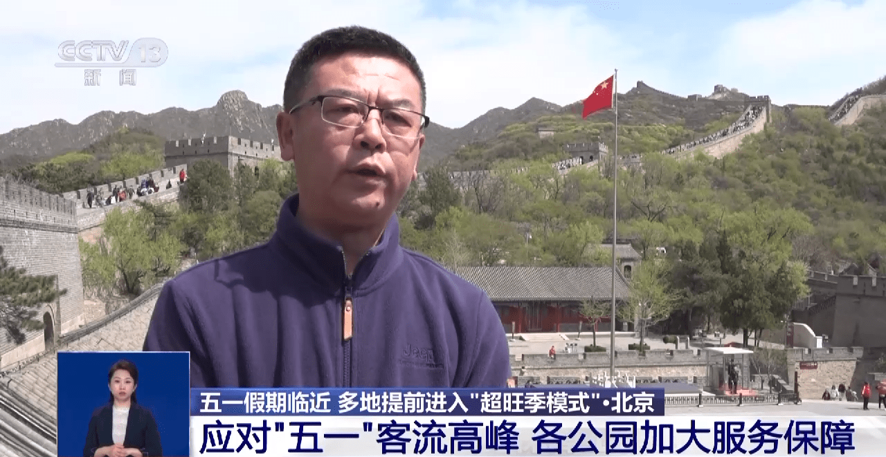 八达岭长城景区新闻发言人 魏慧文:我们成立了19个服务保障工作组,投入干部职工、公安、交通、武警等保障力量897人,划分23个秩序管理区域,开放15条登城通道,14座公共卫生间、569个厕位、3500余个停车泊位,迎接“五一”假日旅游接待高峰。再次提示您假日出游先行预约,再行绿色出游。