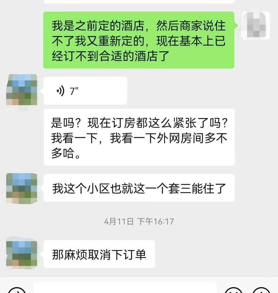 4月22日,李女士陆续接到两家店的电话,要求她主动取消订单。“常州的店家说房子被卖掉了,不做生意了。让我重新找住的地方,她给我补差价。结果周边的房价现在都涨到1000多元,她考虑了一晚上之后,告诉我原本的订单可以继续,可以正常入住。”