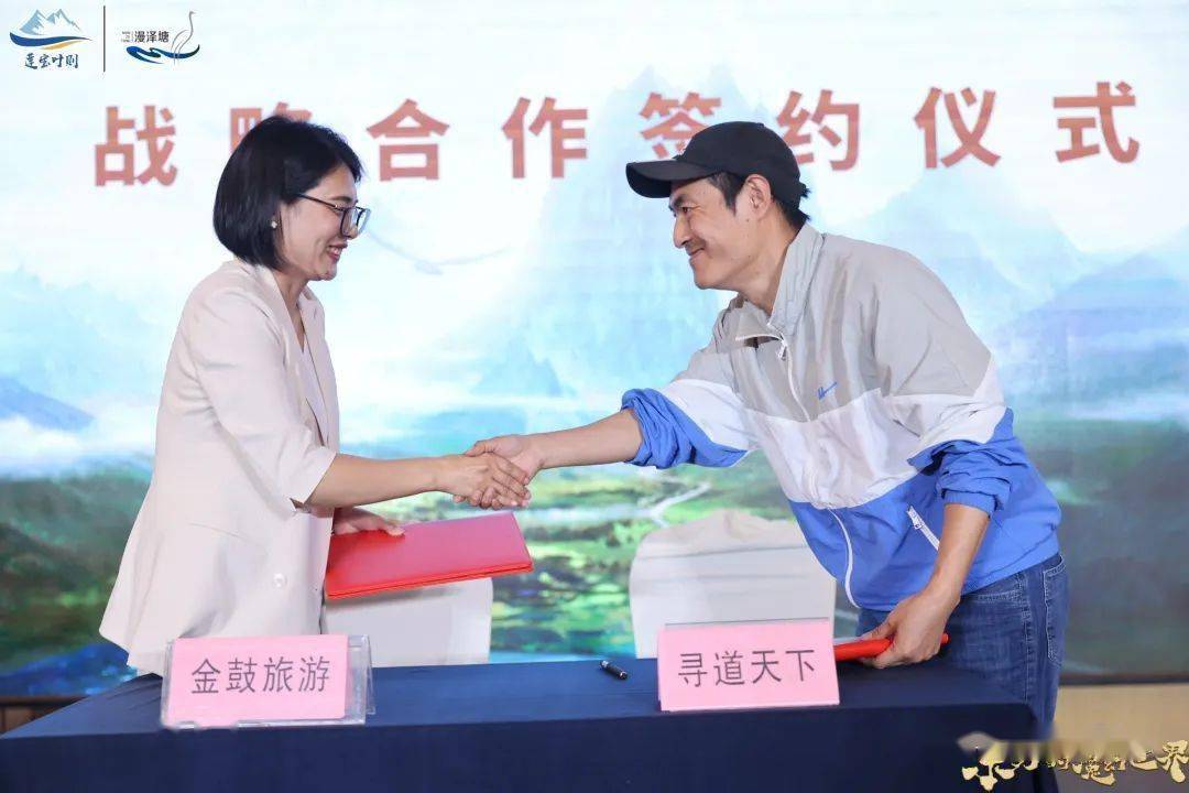 重庆寻道天下户外自驾俱乐部总经理汪易与阿坝县金鼓旅游开发有限公司总经理李平进行签约。