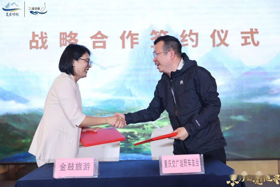为推动巴蜀文化旅游走廊建设,加强川渝两地文旅企业深入合作,推进阿坝县全域旅游发展,贯彻“宜融则融、能融尽融”理念,逐步构建全域旅游融合发展体系,本次大会迎来了一个重要时刻——践行阿坝县全域旅游高质量发展战略合作签约仪式。重庆交广越野车友会会长张羽与阿坝县金鼓旅游开发有限公司总经理李平签署战略合作协议。