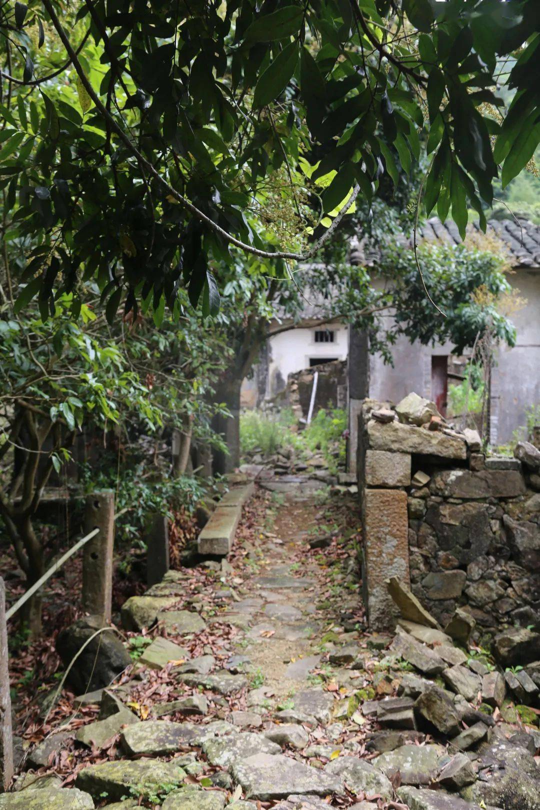 经过20分钟的攀爬徒步,我们也很快进入村庄,村落属于中等规模,目前房屋基本破落坍陷,但是格局仍然清晰,村中有古建筑三排,砖木结构,灰瓦顶,有民居大概50多座左右,大多数为民国时期修复兴建,现存传统民居20座。
