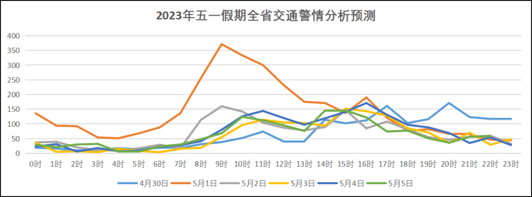 湖北省公安交管局“情指勤舆”一体化合成作战中心通过分析近年“五一”假期交通流量、警情、事故等规律,结合近期出现的新特点、新情况、新变化,对2023年“五一”假期全省道路交通安全形势进行分析研判。