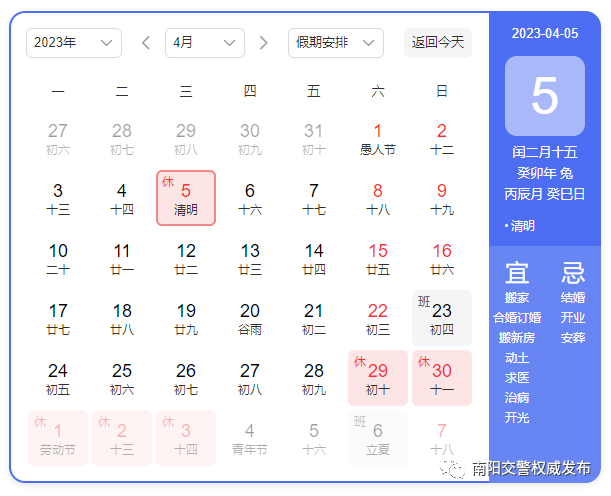 清明节期间,天气晴好,气温适中,预计辖区内乡县衙、宝天曼、天心洞、云露山、二龙山等景区预计交通流量增大,山道、弯道、险·道多,建议市民出行时错开车流高峰时段,在景区道路谨慎驾驶。