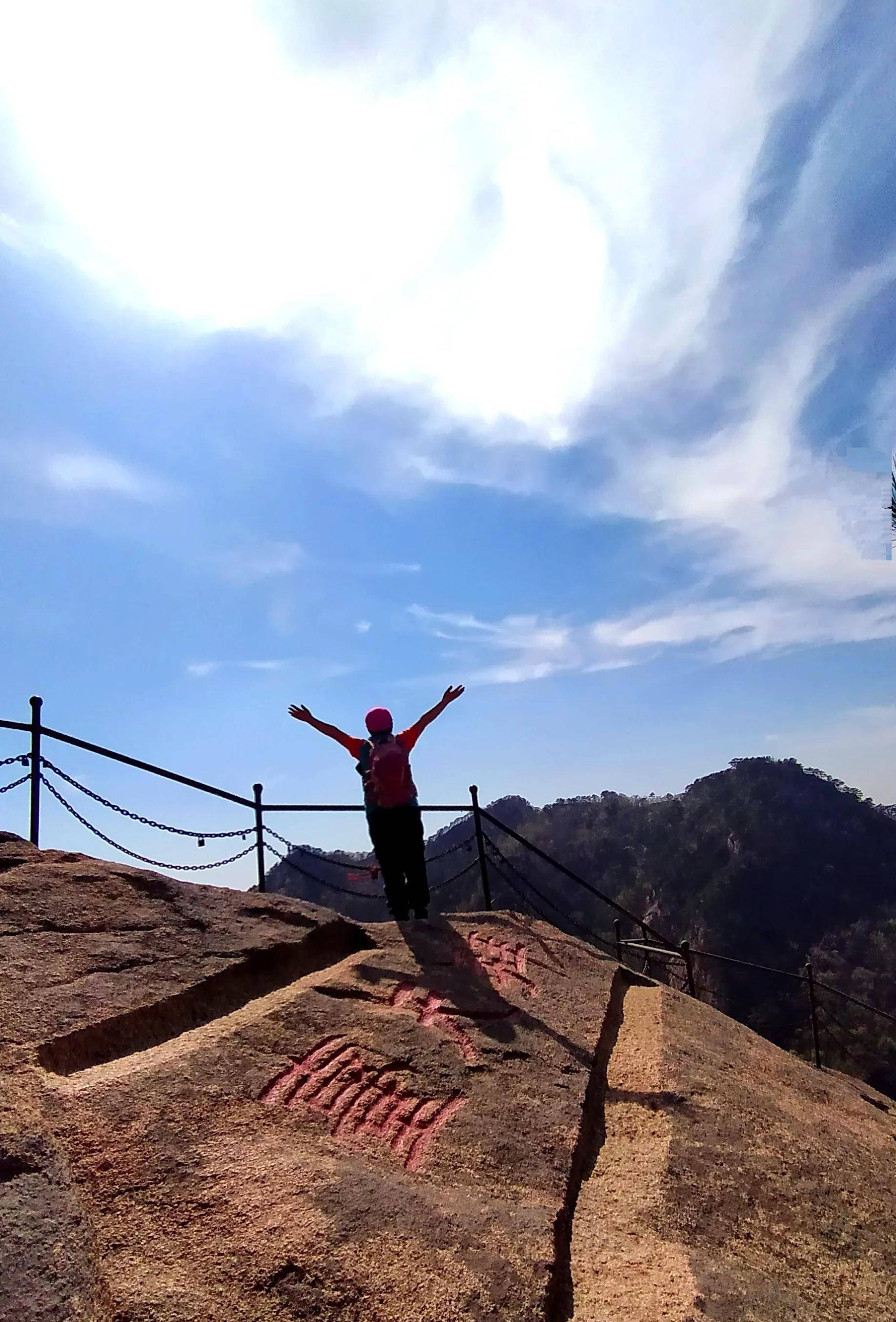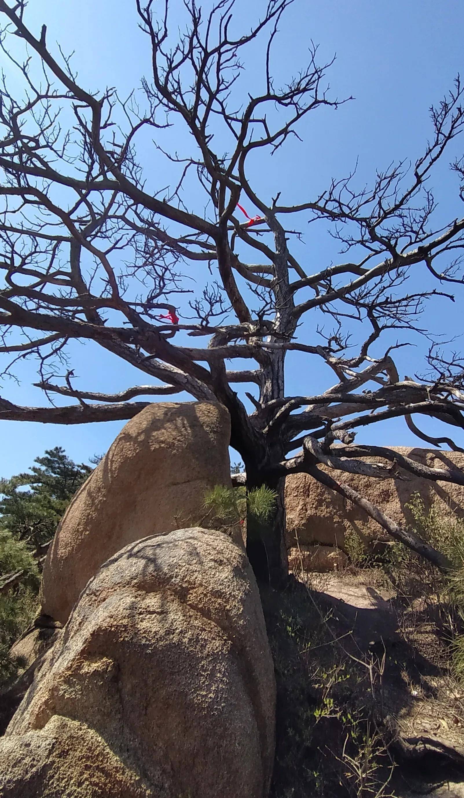 从石门穿过去向上攀爬,来到了玄合峰。玄合峰的峰顶有一棵已干枯的松树,据我的伙伴说,几年前这棵松树还枝繁叶茂呢。