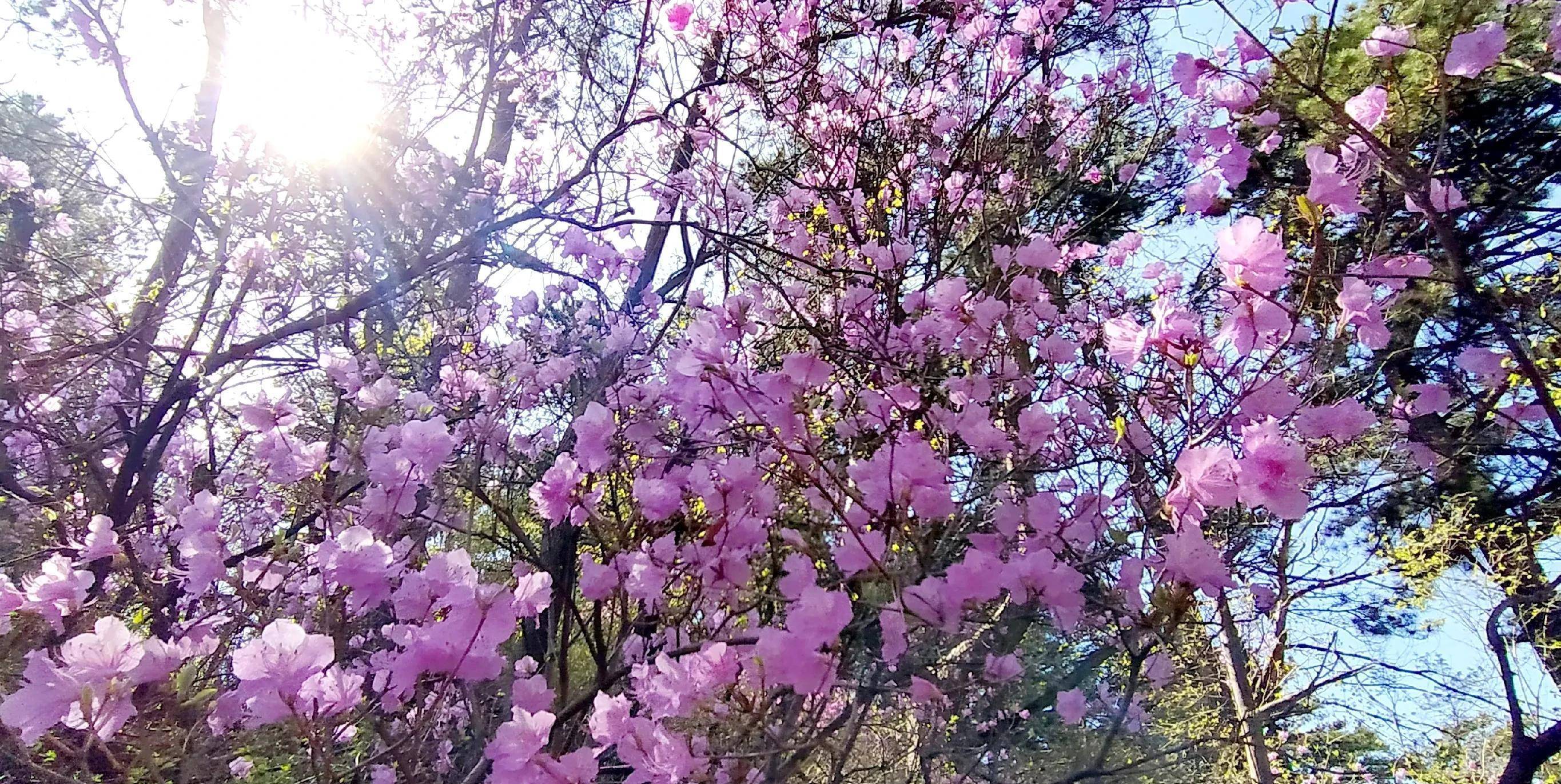 山上的杜鹃花也开了,一簇簇、一丛丛地散落在山间,增加了大山的明媚。走着走着,我发现路的右侧有一大片盛开的山杜鹃,我绕过去细细地欣赏。