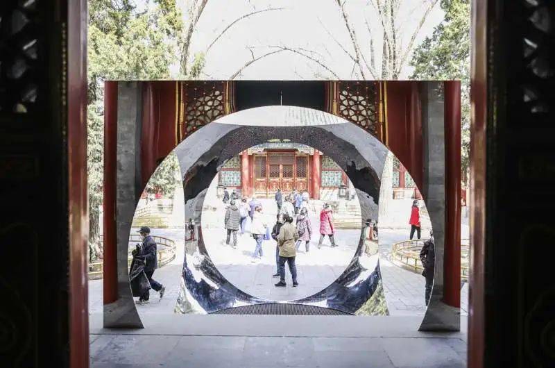 恭王府博物馆,银安殿后台阶放置了一件艺术作品《回响》。