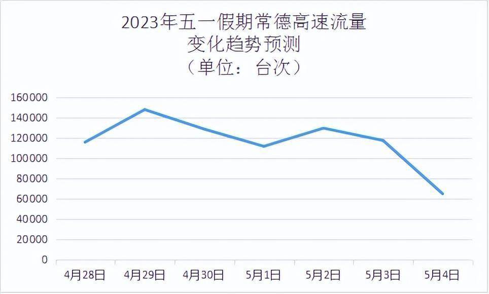 预计2023年“五一”假期(4月28日至5月3日),通行总流量约为72万台次,日均流量约12万台次,同比上升25%。