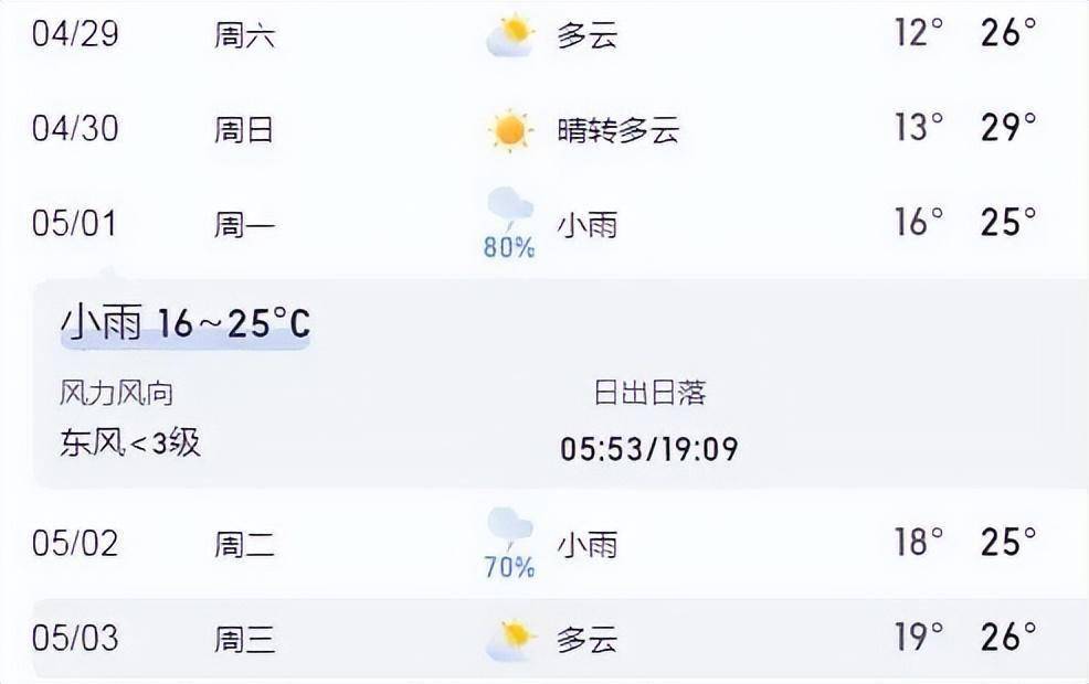 据气象部门预测,五一期间常德地区天气以多云小雨为主,具体如下: