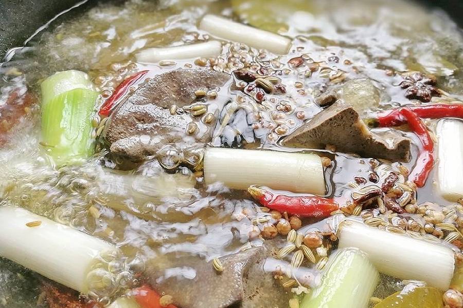 放入的盐最好能稍微重一点,因为是盐水卤制,盐量少的话卤出来的猪肝味道反而过淡。