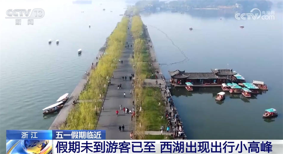 为了避开“五一”假期的客流高峰,很多游客选择错峰出行。在杭州西湖,最近已出现客流小高峰,在苏堤春晓、三潭印月、花港观鱼等景点,游客络绎不绝。