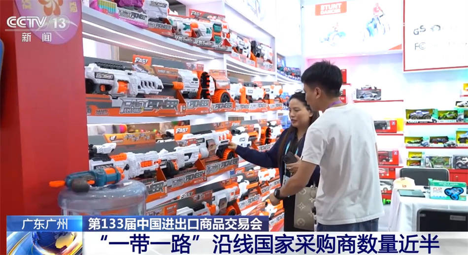 本届广交会积极邀请“一带一路”沿线国家采购商与会,沿线国家采购商数量和质量稳步提升,占到会总人数近一半。在玩具展区,一位来自越南的采购商兴致勃勃地与中国参展企业交流产品情况。
