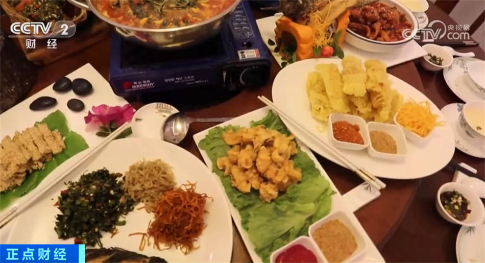 在台江县的一家生态园,师傅们正在用本地养殖的稻田鱼和鲟鱼为游客们制作美食,去鳞、切割、片鱼肉,炸鱼酥,摆盘造型······一番忙碌下来,糖醋鱼卷、芙蓉鱼片等十道不同口味的“十全十美全鱼宴”就摆上了桌。