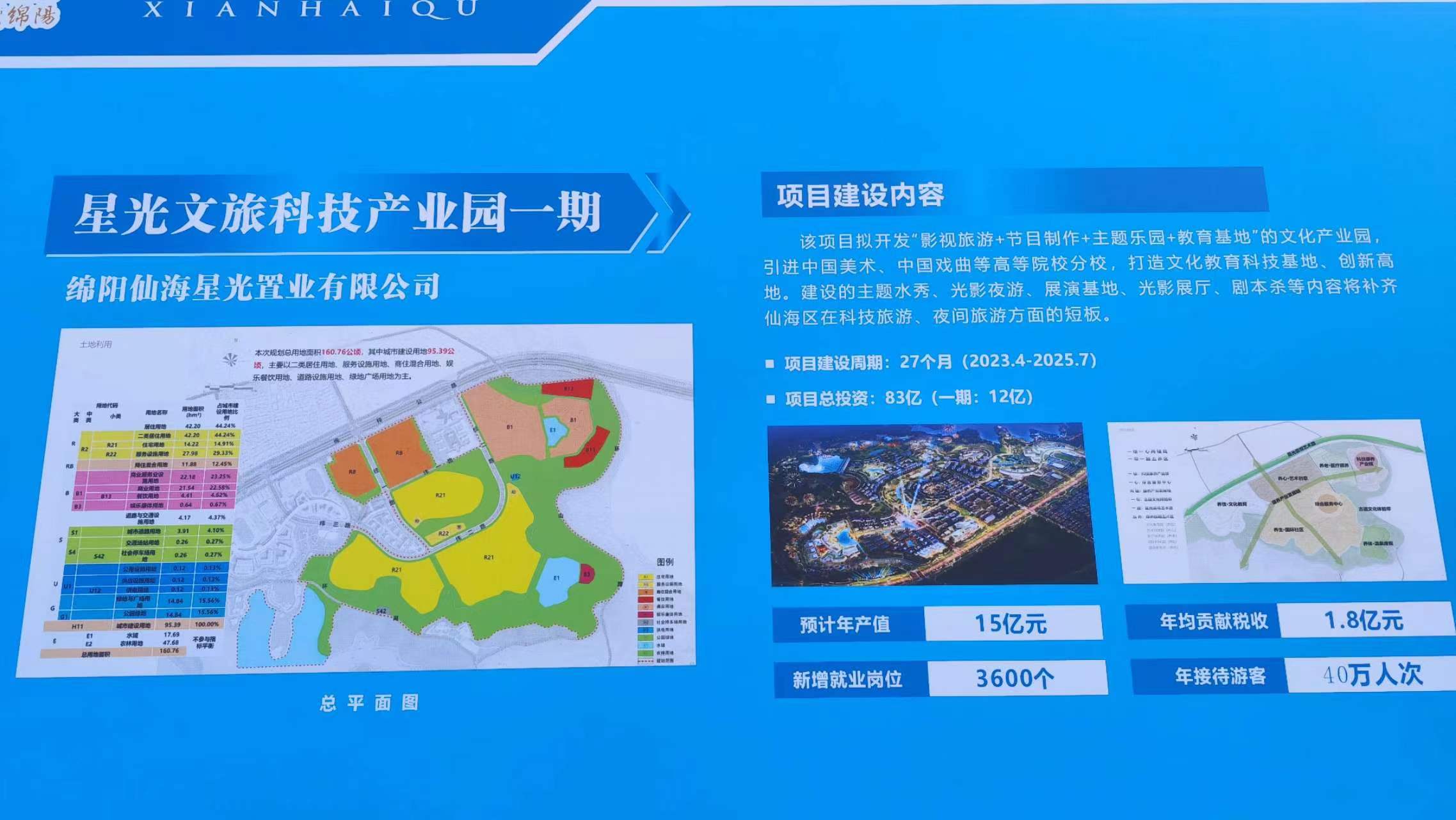 星光文旅科技产业园一期为最大一笔投资,项目总投资83亿,一期投资12亿。该项目拟开发“影视旅游+节目制作+主题乐园+教育基地”的文化产业园,打造文化教育科技基地、创新高地。