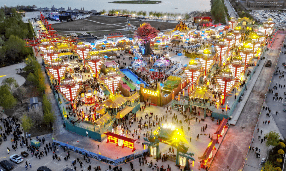 开街首日,“沙湖不夜城”场面异常火爆,游客体验值拉满。