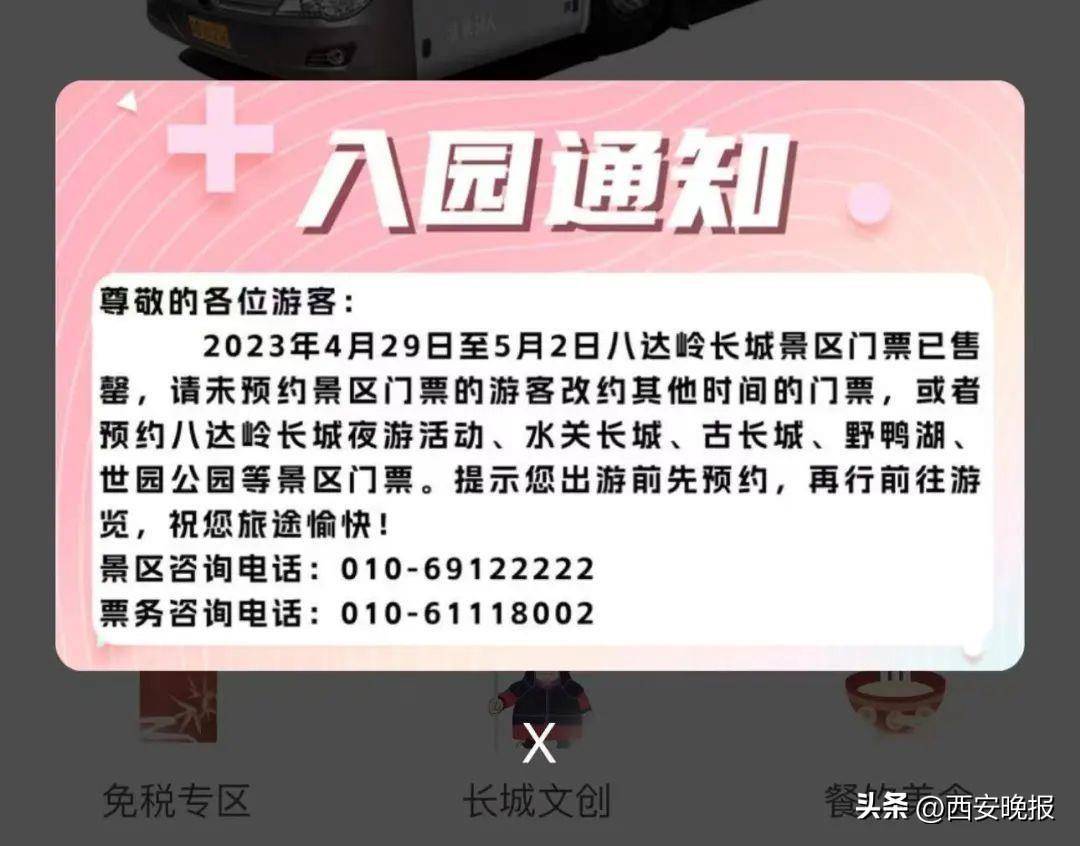 北京八达岭长城景区4月29日至5月2日的门票已经预约售罄。可关注“长城内外旅游”微信公众号,改约其他时间的门票,或者预约水关长城、古长城景区门票。