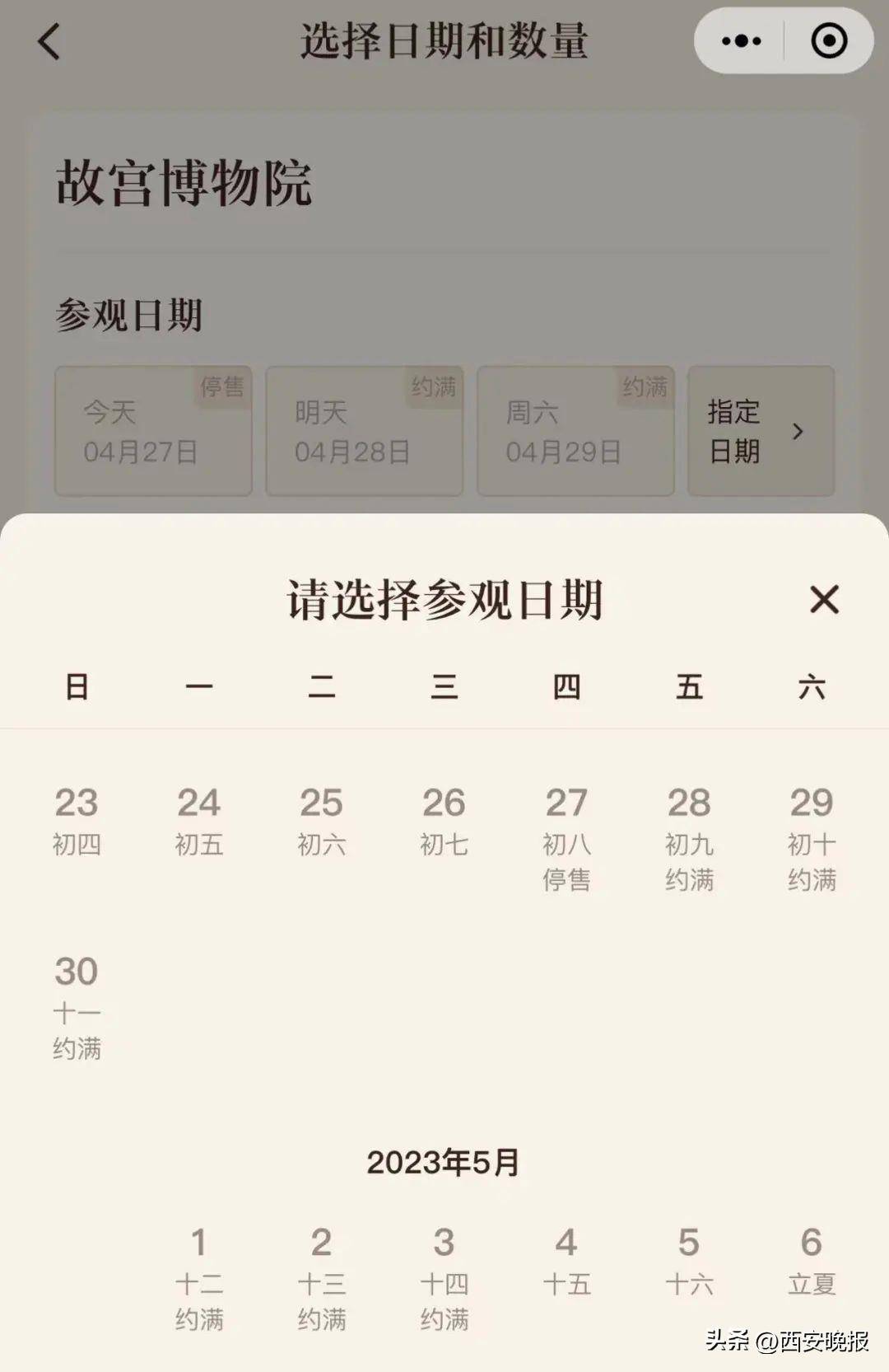 陕西历史博物馆预约平台显示,4月26日起,一直到5月3日假期最后一天的门票都已约满。